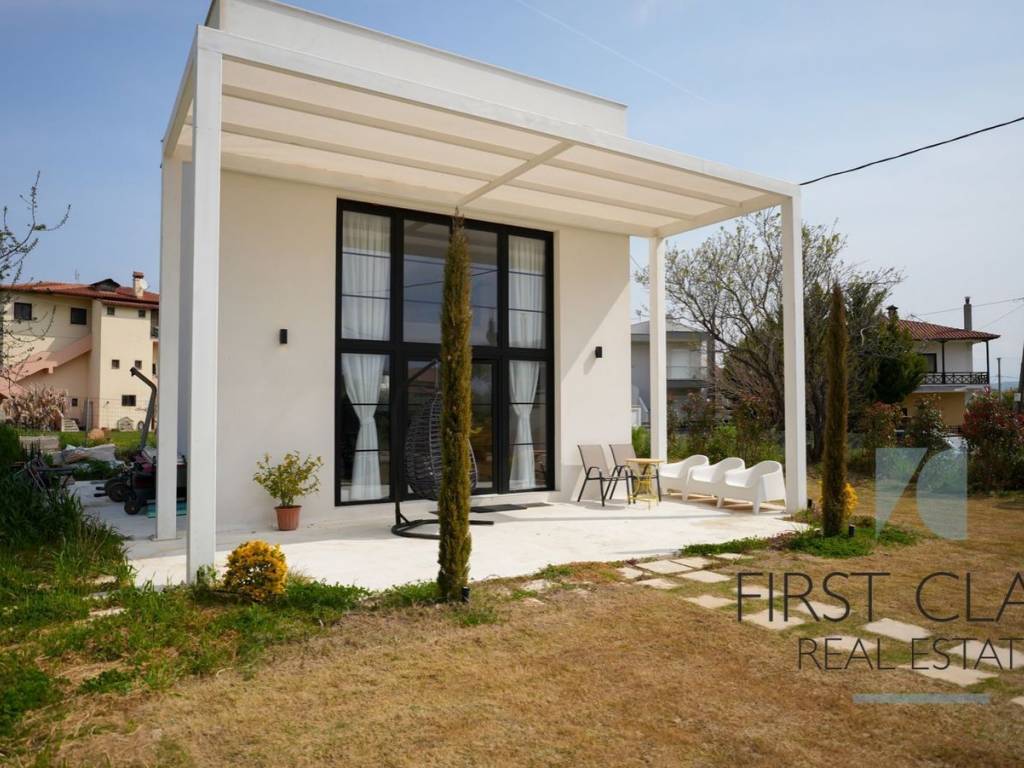 Detached house of 50 sq.m. for sale in Sithonia, on the 1st and 2nd floor (2 levels). The property is set on a 300 sq.m. plot and consists of 1 bedroom, 1 bathroom, a kitchen and a living room, with 1 outdoor parking space. Built in 2025, it is in excellent condition and offers sea views. It features autonomous heating with a heat pump, underfloor heating, air conditioning, aluminum frames with double glazing and tile flooring. The property is furnished, seaside, luxurious and neoclassical, and also includes a storage room, internal staircase and a garden. First Class Real Estate +30 6982646264 thomas@firstclass-realestate.gr