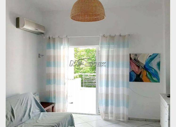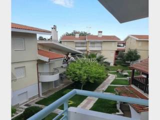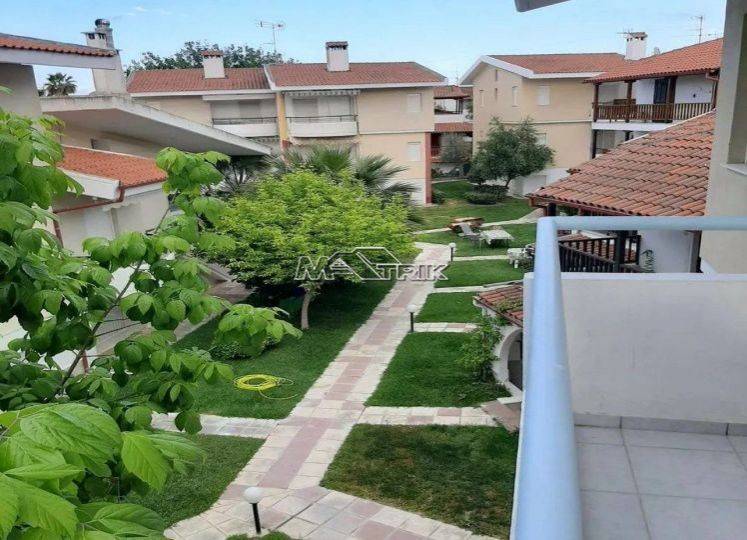 Chalkidiki, Pefkochori, apartment of 55 sqm, in an apartment complex. It consists of two bedrooms, a kitchen-living room and one bathroom. It has aluminum sliding window frames with double glazings and nets, tiled floor, security door, three a/c, ceiling fans on the very wide balcony, as it is fully furnished and equipped with all electrical appliances. It is located in a particularly quiet location and its distance from the sea is 100m. It is a very good choice both for a holiday house and for tourist development with a very high return on capital.