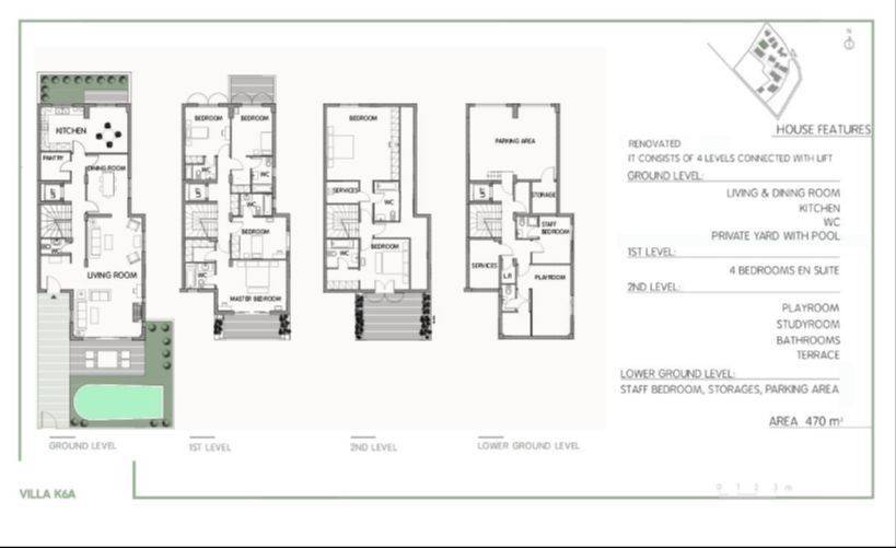 Glyfada – Near Golf Course & City Centre Luxury Detached Villa with Private Garden & Pool for Rent A luxury detached villa of 470 sq.m., located within a secure, high‑end gated residential complex, set in a lush and tranquil environment. The property is developed over four levels, all connected by an internal elevator, and offers exceptional privacy and quality living. Layout: Ground floor: Spacious living and dining area, fully equipped kitchen, guest WC, with direct access to a private garden with swimming pool 1st floor: Four en‑suite bedrooms 2nd floor: Playroom, study/office, bathroom, and terrace Lower level: Staff bedroom, storage areas, and parking space The villa has been renovated, offering bright and comfortable interiors, high construction standards, and a seamless connection between indoor and outdoor living. Residents enjoy 24‑hour security, underground parking, storage rooms, and premium shared amenities including a gym / yoga room / sauna, relaxation areas, meeting room, children’s playground, and landscaped gardens. An ideal choice for families or for those seeking a luxury residence with absolute privacy, within a well‑organized and secure residential setting.