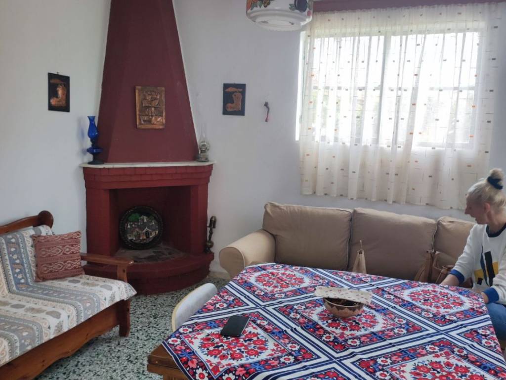 Ano Alissos - Renovation Project Located in the center of Ano Alissos village, 700 m. from the coastline/sea namely Alissos Beach, this sunny two-storey country house with the red tiled roof is a semi-detached dwelling on a completely flat land within building line and consists of two separate apartments connected with an external staircase. The upper floor wide veranda enjoys an excellent sea view. The elevated ground floor includes a luminous sitting room with a fireplace and an air-conditioning unit, a spacious bedroom, kitchen, bathroom and store room. The upper floor offers two bedrooms and a sitting room with a wooden floor. The yard has a lemon tree, a magnolia tree, two mulberry trees and flowery bushes. With western orientation the property is located on a quiet side road of the village of Ano Alissos 100 m. away from the village primary school and 1 km. from the National Road to Patras/Pyrgos. Together with the nearby villages Ano Alissos is a lively area, becoming increasingly popular with the commuters since they prefer to reside here, a short drive away from work and stores to either Patras (19 km./ 30-minute drive) or Kato Achaia (3 km.). This property is an ideal investment opportunity and with the restoration offers prospects such as a two-storey family residence or two separate apartments.