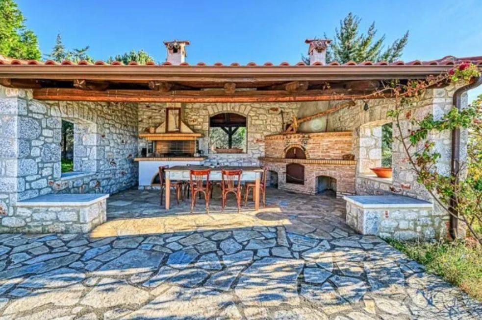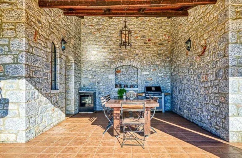 A stone villa of 400 sq.m. set on 4,000 sq.m. of land, with uninterrupted views over the Argolic Gulf and the historic town of Nafplio — just 10 minutes from the centre, offering complete privacy and tranquillity. Layout 1st Floor — The Heart of the Home An open-plan kitchen flows into a dining area and sitting room with fireplace. Beyond lies the grand formal living room with its stately dining space and second fireplace. The crown jewel of the floor — a 50 sq.m. master suite — complete with jacuzzi, private bathroom and walk-in closet. 2nd Floor — Your Private Retreat The entire floor is dedicated to a spacious bedroom with its own private bathroom and a balcony offering breathtaking views of the gulf. Ground Floor — Practicality Meets Comfort Enclosed garage for 2 vehicles, plus outdoor parking for 4 more. A third bedroom with private bathroom, built-in wardrobes and 2 storage rooms complete this level. The Garden: A built-in BBQ, a traditional wood-fired oven and a small Orthodox chapel within the grounds. Here, nature, tradition and luxury meet in perfect harmony. At a glance: 400 sq.m. | Plot 4,000 sq.m. 3 bedrooms (2 master en-suite) | 3 bathrooms + 1 WC 3 fireplaces | Jacuzzi | Walk-in Closet Garage for 2 + 4 outdoor spaces | 2 storage rooms Views of Argolic Gulf & Nafplio | ⛪ Private chapel | BBQ & Wood-fired oven Fully furnished | Stone-built, 2000