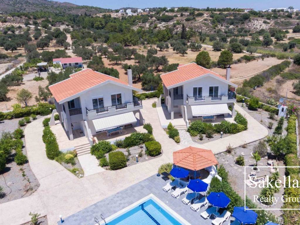 Ρόδος. Διατίθενται προς πώληση, στο Γεννάδι, 2 πολυτελής αυτόνομες και ανεξάρτητες μεζονέτες επιφάνειας 141τμ η κάθε μία σε οικόπεδο συνολικής έκτασης 2.120τμ με πισίνα. Η κάθε κατοικία χαρακτηρίζεται από σύγχρονη νησιώτικη αισθητική και αναπτύσσεται σε δυο επίπεδα. Το ισόγειο περιλαμβάνει έναν άνετο ενιαίο χώρο σαλονιού και τραπεζαρίας όπου ξεχωρίζει το τζάκι με μοντέρνα επένδυση πέτρας, την εντοιχιζόμενη και πλήρως εξοπλισμένη κουζίνα καθώς και ένα ευρύχωρο μπάνιο. Η εσωτερική κομψή μαρμάρινη σκάλα οδηγεί στον 1ο όροφο που φιλοξενεί 3 άνετα υπνοδωμάτια με μεγάλες ντουλάπες καθένα από τα οποία διαθέτει δυο παράθυρα-μπαλκονόπορτες εξασφαλίζοντας άφθονο φυσικό φως, αερισμό και θέα προς την θάλασσα. Το επίπεδο του 1ου ορόφου ολοκληρώνεται με ένα μεγάλο κύριο μπάνιο, ένα μικρότερο μπάνιο καθώς και έναν πρακτικό αποθηκευτικό χώρο σε μορφή ημι-ορόφου με εύκολη πρόσβαση, ιδανικό για οργάνωση και επιπλέον άνεση. Οι κατοικίες διαθέτουν συναγερμό, ηλιακό θερμοσίφωνα, κλιματιστικό σε όλους τους χώρους, διπλά τζάμια, ρολά, κουφώματα αλουμινίου και ρεύμα τριφασικό. Στον περιβάλλοντα χώρο δεσπόζει μια εντυπωσιακή πισίνα των 45τμ συνοδευόμενη από οργανωμένο χώρο μπάρμπεκιου και παιδικές κούνιες δημιουργώντας ένα ιδανικό περιβάλλον χαλάρωσης και ψυχαγωγίας για όλη την οικογένεια, ενώ στο οικόπεδο υπάρχει και ένα αυτόνομο βοηθητικό δωμάτιο περίπου των 30τμ το οποίο μπορεί να αξιοποιηθεί για διάφορες χρήσεις. Πρόκειται για ένα μοναδικό συγκρότημα δυο κατοικιών, μόλις 900μ από την παραλία Γενναδίου, ιδανικό για κερδοφόρα τουριστική εκμετάλλευση καθώς διαθέτει όλο τον απαραίτητο εξοπλισμό και και λειτουργεί ήδη με επιτυχία σε πλατφόρμες κρατήσεων. Εξίσου εξαιρετική επένδυση αποτελεί και ως εξοχική ή παραθεριστική κατοικία προσφέροντας τη δυνατότητα χρήσης από μία ή δυο οικογένειες σε μία από τις ωραιότερες περιοχές του νότιου τμήματος του νησιού. Έτος Κατασκευής 2000.(Έτος Οικοδομικής Άδειας 1995) Συνολική τιμή πώλησης: 640.000€