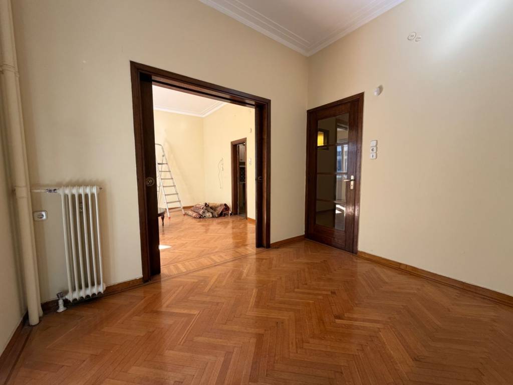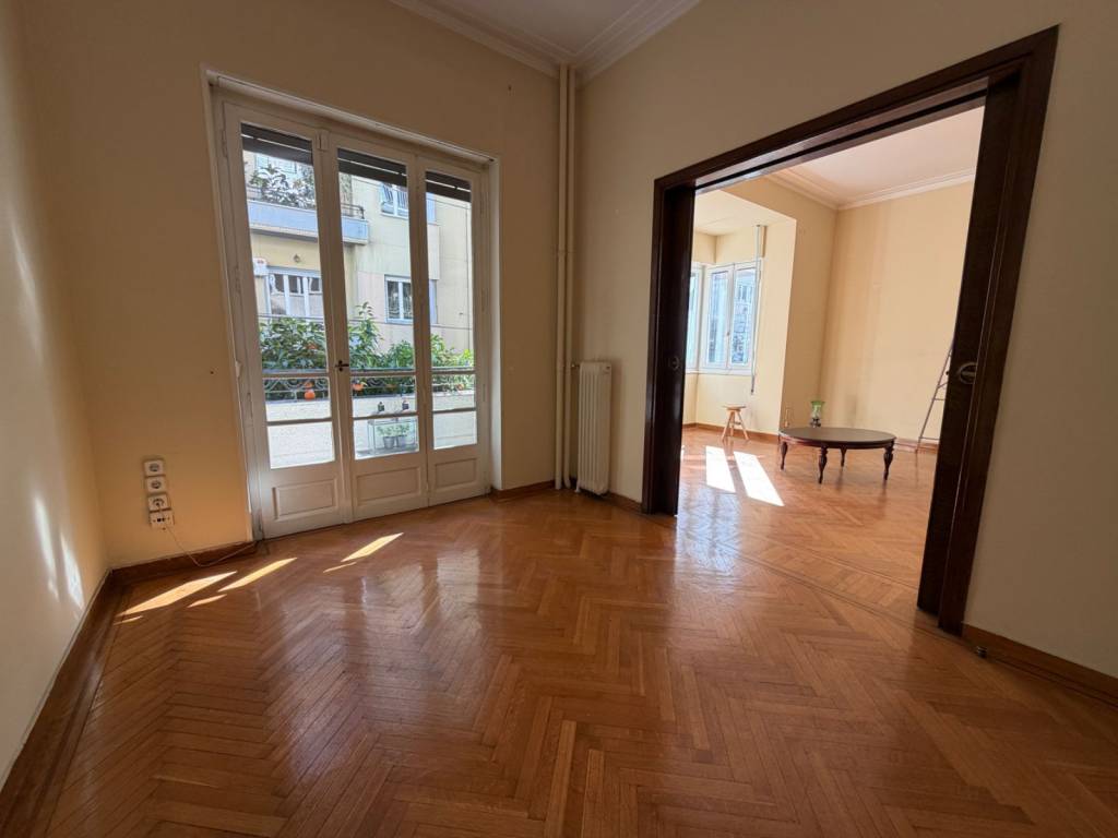 Σε ήσυχη πολυκατοικία εποχής μεσοπολέμου με πολύ ωραία είσοδο, ανάμεσα στο Αρχαιολογικό Μουσείο και το Πεδίο Άρεως, αρχοντικό διαμέρισμα 100τμ 1ου ορόφου διαμπερές, το οποίο αποτελείται από 4 μεγάλα κύρια δωμάτια, χολ, ανακαινισμένη κουζίνα, λουτρό & WC καθώς και μικρό βοηθητικό δωμάτιο και μεγάλο πατάρι. Στην κύρια και στην πίσω όψη υπάρχουν μικρά μπαλκόνια. Στους κύριους χώρους έχει δρύινα πατώματα και κουφώματα σε άριστη κατάσταση. Θέρμανση: Κεντρική με Φυσικό Αέριο. Air Condition: Στα δύο από τα τέσσερα κύρια δωμάτια. Εγκατάσταση συναγερμού