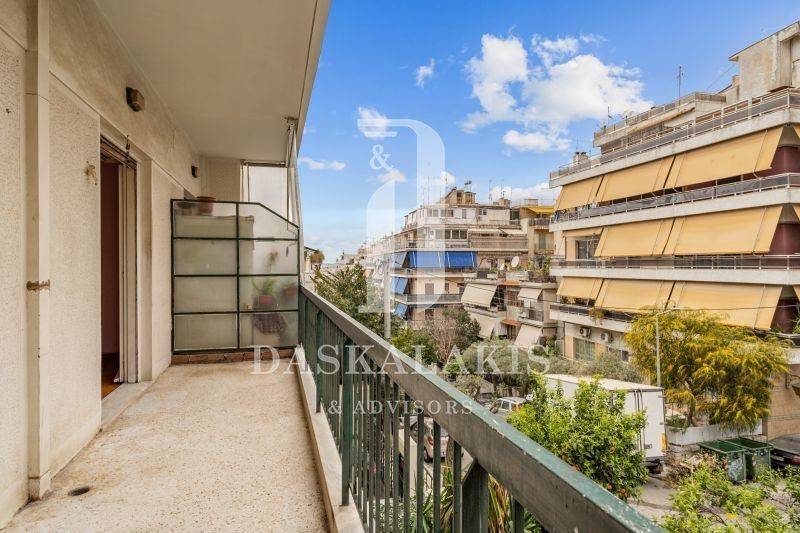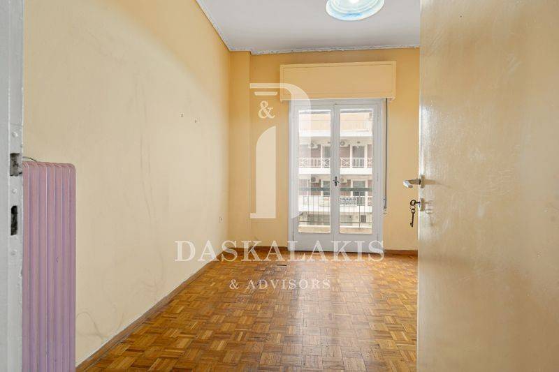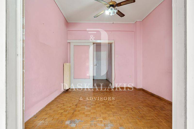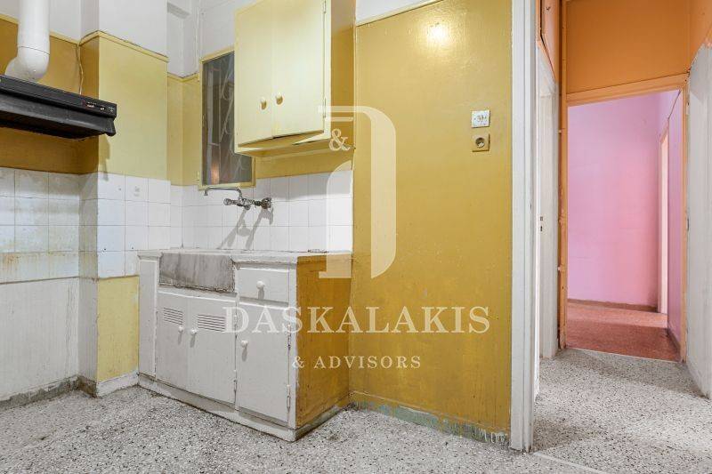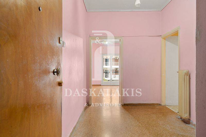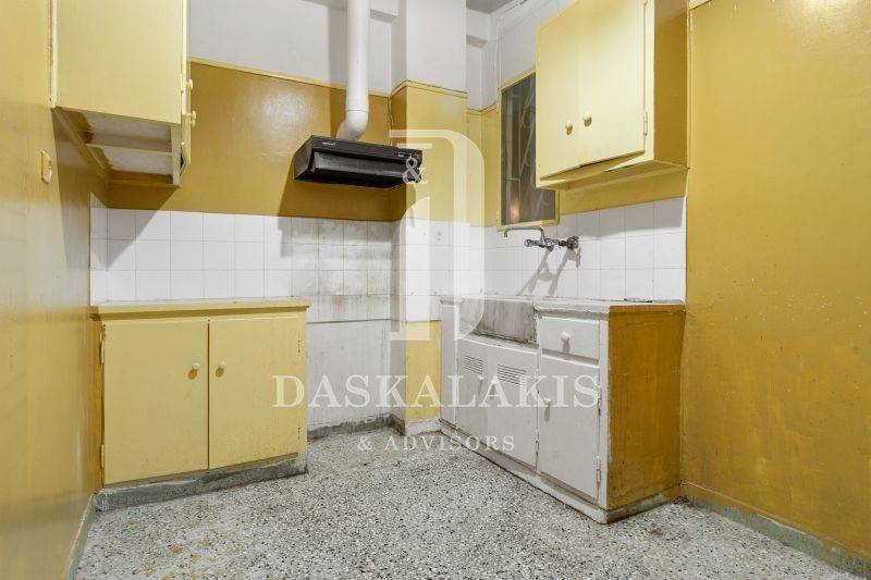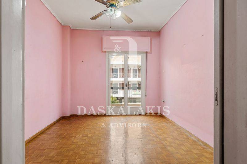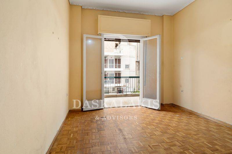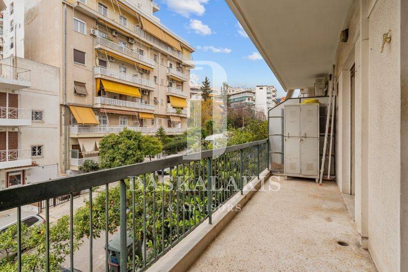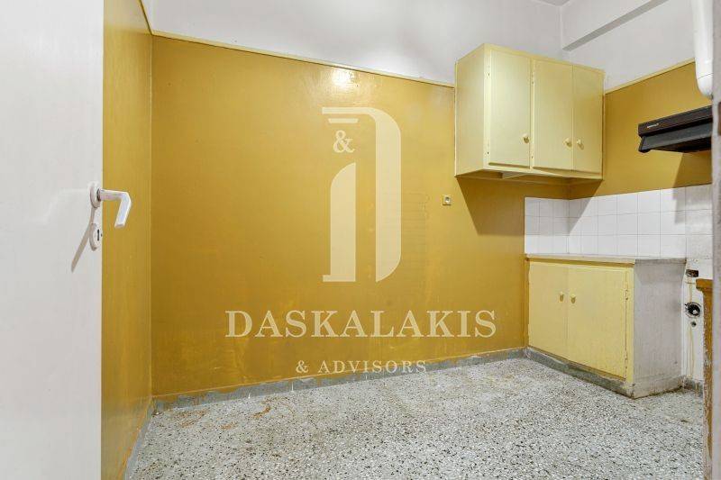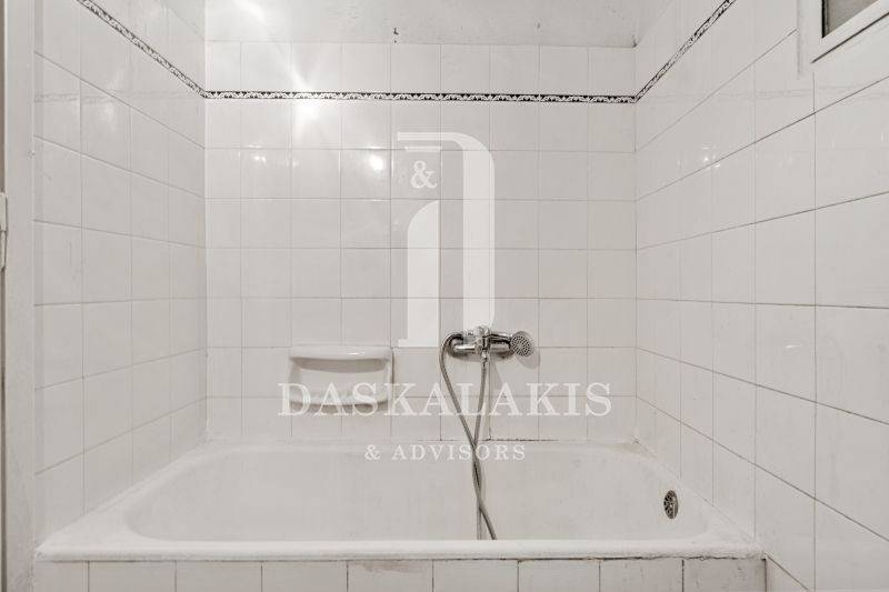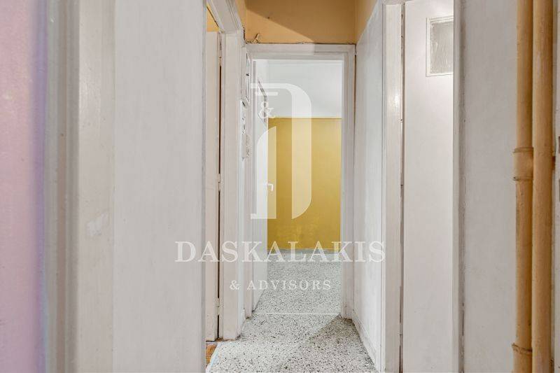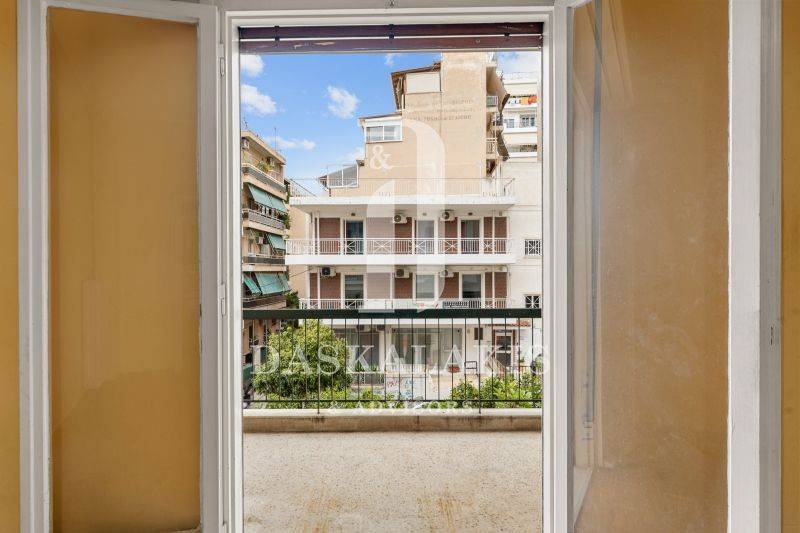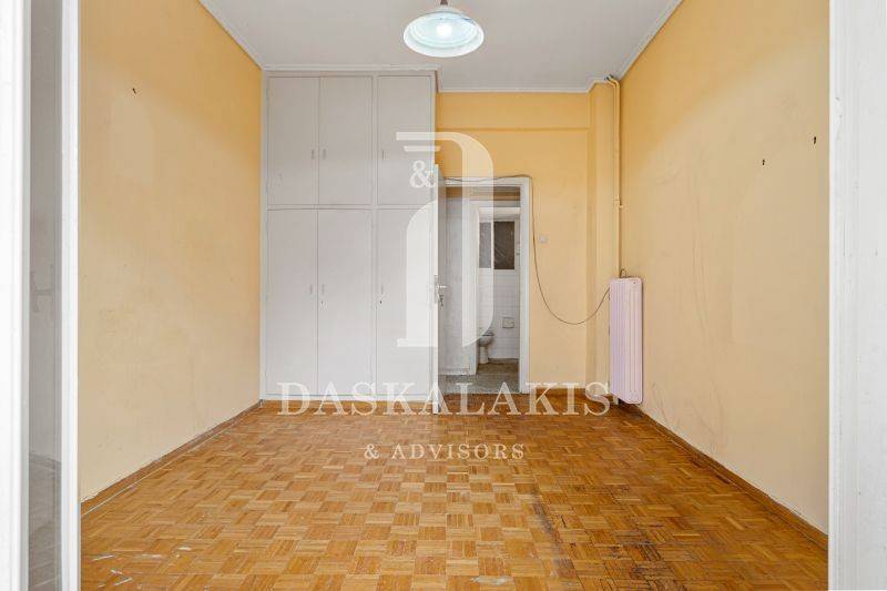 Vironas: An apartment of 50,5 sqm on the first floor, with elevator, is available for sale. The apartment consits of one bedroom, one living room, one entrance hall, one bathroom, one kitchen and a very spacious veranda. It has wooden frames, central oil heating, wooden flooring and mosaic flooring. It's 400 meters from Smirnis square. Property Code: 9-2825.