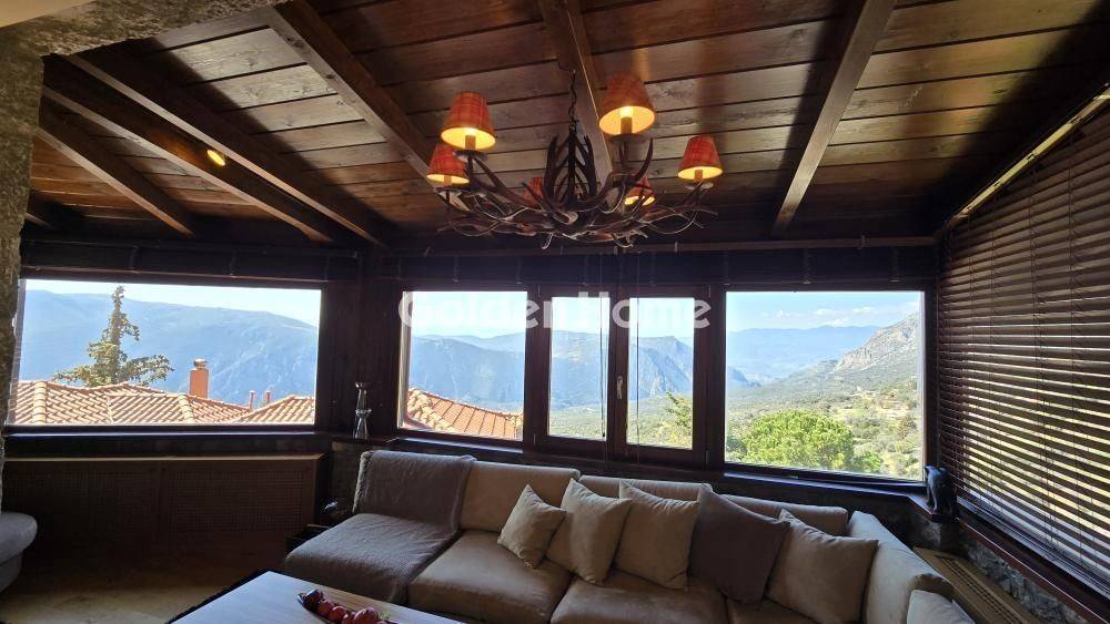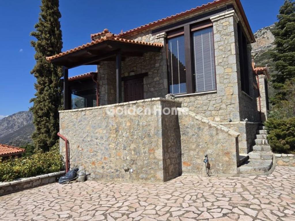 VIOTIA ARACHOVA WITH A VIEW OF THE DELPHI LANDSCAPE FOR SALE luxurious semi-detached maisonette of 168 sq m, with 3 master bedrooms, 3 bathrooms, 1 WC on the ground floor, open plan kitchen with living room and lounge, in one of the best areas of Arachova. The stone chalet is located on a sloping plot and is divided into 3 levels. On the upper level is the autonomous attic with a living room, fireplace and its own bathroom. The internal staircase leads to the kitchen level with large windows and a wonderful view of Parnassos. From the living room with the fireplace you enjoy a view of the Delphic landscape! Going down to the ground floor are the 2 master bedrooms with direct access to the garden. On the same level there are auxiliary storage spaces. The surrounding area of the chalet includes approximately 200m2 of land with unobstructed views of Mount Parnassos and the Delphic landscape. The chalet is located just 5 minutes by car from the center of Arachova. For Sale, maisonette, Full Bathrooms: 3, Half Bathrooms: 1, Living Area: 168 Sqm, Rooms: 3, Year Built: 2000, Holiday Home, View, Fireplace, Garden, Internal Stairs, Storage Space, Garage, Floor Number: Ground Floor, For Commercial Use, Pets Allowed, Attic, Bright, Kitchens: 1, Joinery: Aluminium, Floor Type: Ceramic Tiles, Lot Size: 200 Sqm, Levels: 3, Heating Controller: Autonomous, Heating Medium: Petrol, Road Type: Asphalt, Zoning: Residential, Energy Class: D, Orientation: E, Current: Three Phase, Balcony Area: 00, Distance Sea: 00, Common Expenses: 01