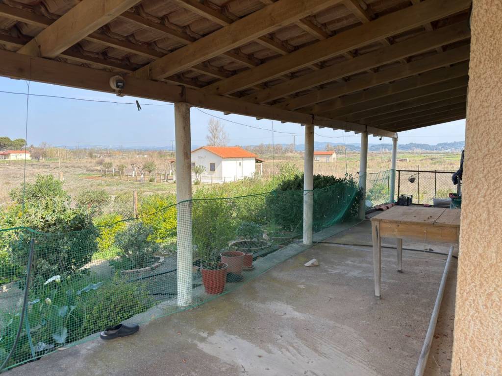 An independent detached home is available for sale in a prime coastal location. Situated just meters from the shore, this property offers the ultimate sense of tranquility and privacy. Surrounded by an open horizon, it beautifully blends traditional architecture with the comfort of expansive outdoor living areas. Key Property Features: • Interior Spaces: Features 3 spacious bedrooms, providing ample room for a large family or guests. • Condition: Offered fully furnished and equipped with all essential appliances (stove, refrigerator, TV), making it move-in ready for immediate occupancy or rental exploitation. • Exterior Highlights: The property's standout feature is the large covered veranda that wraps around the house, offering cool shade and panoramic views of the natural landscape and the sea. • Surrounding Grounds: The plot is fully fenced and features a garden with local vegetation and flowers. It also includes auxiliary structures, such as an external pump house and storage unit. In addition a surveillance system of cameras is installed on the house.