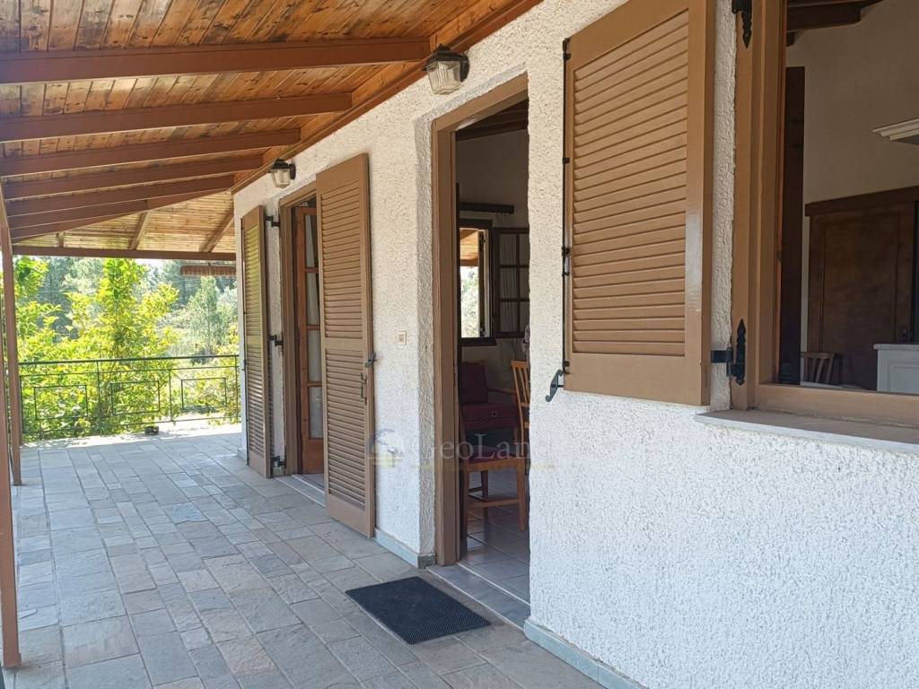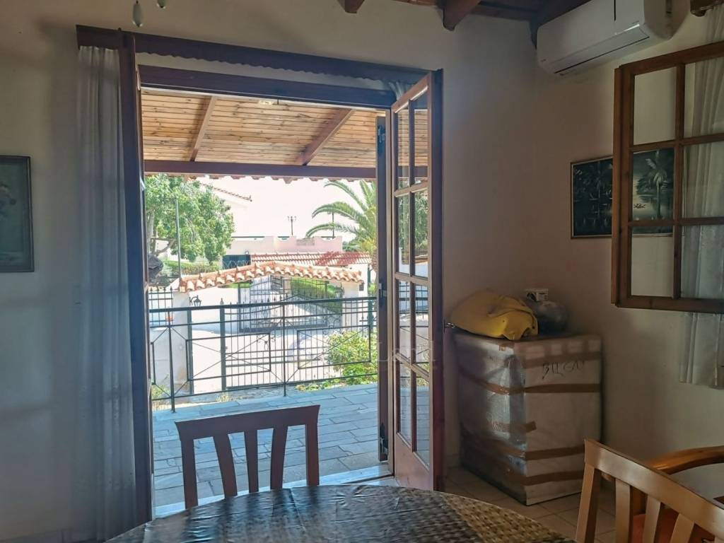 A beautiful country house, in a quiet and beautiful neighborhood of Portocheli is available for sale by Geoland Real Estate. The house has a surface of 64 sqm on a plot of about 500 square meters, a spacious and bright open plan living and kitchen area, 2 bedrooms and a bathroom with shower. The exposed wooden roof gives a warm and inviting style to the space. Outdoors, there are 2 large terraces, which have a very beautiful view of a green surroundings with pine trees and in the background sea views. The garden is overgrown with fruiting trees and rose bushes adding extra charm and an amazing scent. Right next to the fenced garden of the house, there is an additional piece of land of 700 square meters, which has a pergola for cars and can be used in various ways. The house is located about 860m from the closest beach, 2 km from the beaches of Aimilianos, 1,5 km from Petrothalassa and just 1 km from Portocheli. It is delivered furnished, with all existing electrical appliances. A very attractive new proposal from Geoland Real Estate that is worth a closer look. Make your appointment and come and let us show you around.