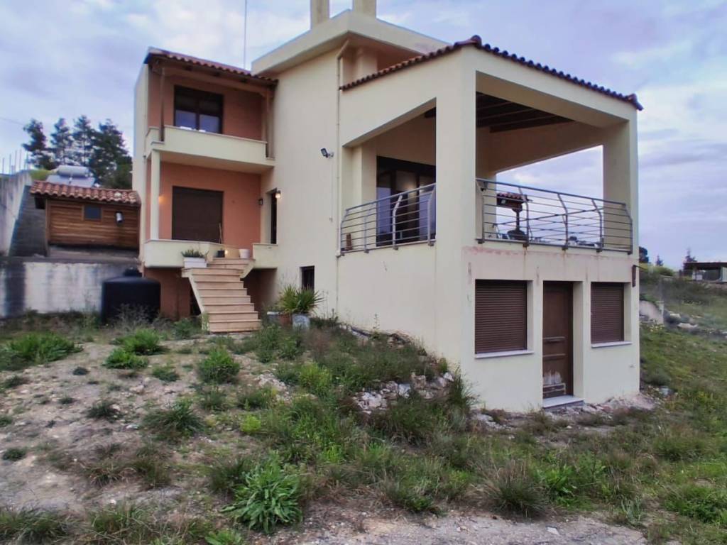 ΔΙΑΤΙΘΕΤΑΙ ΠΡΟΣ ΕΠΕΙΓΟΥΣΑ ΠΩΛΗΣΗ ! Μιά πολυτελής μονοκατοικία τριών (3) επιπέδων, 200 τ.μ. (κατά προσέγγιση) επί οικοπέδου 1.050 τ.μ., σε σημείο του Ο.Σ.Μ.Α.Ε.Σ. με νότιο - ανατολικό προσανατολισμό καί τελείως ανεμπόδιστη θέα προς το "Λυκόρεμα" καί το καταπράσινο τοπίο του οικισμού, σε απόσταση μόλις 1 χλμ. απ' την Παραλιακή Λεωφόρο του Θεολόγου . Το ακίνητο κατασκευαζόταν κατά την χρονική περίοδο '08 - '10 καί η αρχιτεκτονική του δομή διακρίνεται από δύο (2) διαφορετικές κατοικίες, καί συγκεκριμένα από : => Μεζονέτα Α/Β Ορόφου, υπό την εξής διαμόρφωση : * Α' Όροφος Μεζονέτας : ενιαίος χώρος καθιστικού με τζάκι/τραπεζαρίας/κουζίνας, ένα (1) "master" υπνοδωμάτιο μ' ένα (1) "en - suite" λουτρό καί ευρύχωρη βεράντα προσόψεως με τελείως ανεμπόδιστη θέα προς το "Λυκόρεμα" . * Β' Όροφος Μεζονέτας : ευρύχωρο χωλ, δύο (2) υπνοδωμάτια με βεράντες προσόψεως καί ένα (1) λουτρό . Σημαντική Αρχιτεκτονική Σημείωση : Η οροφή του Α' ορόφου (ή αλλιώς, η πλάκα του Β' ορόφου) καταλαμβάνει περίπου το 50% της κάλυψης, με αποτέλεσμα ο Α' όροφος να έχει ελεύθερος ύψος (δηλαδή, δημιουργείται εσωτερικός εξώστης) . => Ισόγειο (Ανεξάρτητο) Διαμέρισμα, τ' οποίο βρίσκεται στο στάδιο των επιχρισμάτων καί αποτελείται από : έναν (1) ενιαίο χώρο καθιστικού με τζάκι/τραπεζαρίας/κουζίνας, δύο (2) υπνοδωμάτια, ένα (1) λουτρό καί μιά (1) αποθήκη . Τέλος, επισημαίνεται ότι ο περιβάλλων χώρος του οικοπέδου είναι αδιαμόρφωτος καί απαιτεί τις παρακάτω εργασίες : ~ περιμετρική περιτοίχιση ~ ράμπα προσπέλασης οχημάτων Σημείωση : Επί του ακινήτου υφίσταται ενυπόθηκο βάρος, τ' οποίο τελεί υπό διαπραγμαύτευση για απομείωση .