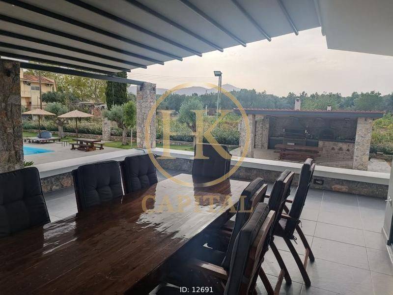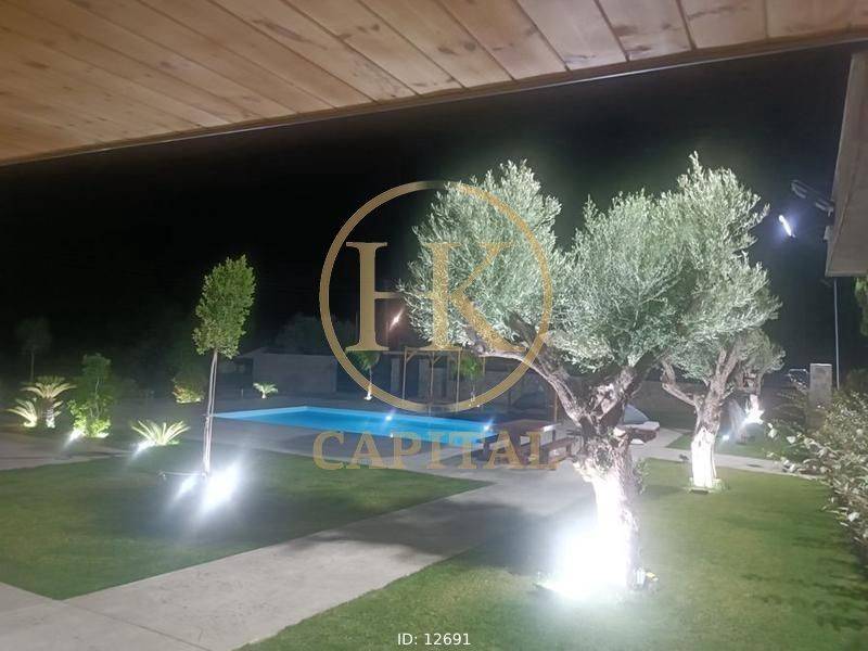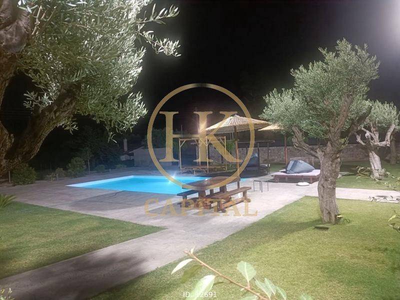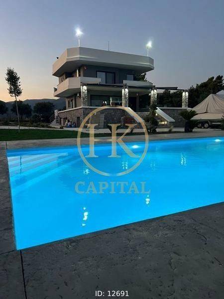 In the highly privileged area of ​​Kineta Megara, on an impressive plot of 5,000 sq m, an excellent, modern villa of a total area of ​​230 sq m, built in 2021, energy class A+, is available for sale, combining luxury, privacy and a high standard of living. The property is developed on two levels (semi-basement and ground floor) and stands out for its functionality, aesthetics and quality of construction. On the ground floor we find a spacious and particularly bright living room with fireplace, dining area and direct access to the large verandas, as well as a fully equipped kitchen with modern electrical appliances and guest WC. On the upper level there are three large bedrooms, all master, with private bathrooms, ensuring absolute comfort and privacy. The semi-basement hosts two additional bedrooms, a bathroom, a spacious living room, storage space and playroom, ideal for hosting or creating an independent guesthouse. All areas have air conditioning, satellite TV and a central heating system with fan coil. The aluminum frames with double glazing and screens, the security door, the alarm and the video intercom enhance the feeling of security and quality. The outdoor area is a point of reference, with a private swimming pool surrounded by trees, landscaped relaxation areas with sun loungers and hammocks, two covered gazebos with a dining area, as well as a fully equipped barbeque area. The property also has a drilling permit from 2022, while access is via an asphalt road. Its location, just 50 km. from Athens and within walking distance of beaches such as Psatha and Alepochori, makes it an ideal choice for both home ownership and high-standard investment development. Price €490,000 (code 12691-P) 2100108293;6987221138 HK CAPITAL INVESTMENTS REAL ESTATE IKE