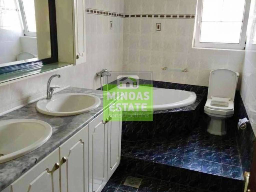 Souda, Center: 150 sq.m. floor apartment for rent. on the 1st floor with autonomous oil heating. It consists of 3 bedrooms, 1 single room living room - kitchen, Garden, warehouse 15 sq.m. and 2 bathrooms. It was built in 2008, painted and has a view of the sea, aluminum frames with double glazing, air conditioning in each room and in the single, marble floors, fireplace, screens, solar water heater, built-in kitchen, built-in dishwasher. It is ideal for families or workers. Price €1,000 | Property Code: #E-15250