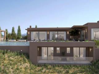A true landmark of high aesthetic, privacy and breathtaking vistas to the endless blue, nestled among Crete's endless olive groves.As the site has unobstructed views to the sea, the intention is to create a residence which maximises the visual connection to the sea. Along the whole villa, towards the north, stretches the open-air landscaped area, divided into two levels. In front of the common areas is the covered outdoor seating area and the swimming pool; canopies offer protection from sun during the summer.The villa's interior areas are L-shaped, literally embracing the outdoor area as a central point. It's also taking the pool experience to a whole new level. Enjoy the panorama while seated at the specially designed outdoor lounges or catch the sun on the wooden deck.The living areas are designed and developed along the view line, making full use of its potential. Large openings allow natural light to penetrate the interior, adding thermal efficiency during the winter period. The domination of earthy tones and its combination with contemporary materials highlight the form and the simplicity of the design.The villa covers a total of 229 sqm, on a plot of 983 sqm. It enjoys an open plan kitchen with high-end finishes and a stylish bar-stand which becomes the focal point. This area connects seamlessly with the dining area and the living room. This level is also flanked by an en-suite bedroom, oriented towards east. A stairway links the two levels. Downstairs, there are two secluded bedrooms with fitted wardrobes and en-suite bathrooms as well as a storeroom. Both bedrooms lead out to a shared verandah with breathtaking views to the coastline of Platanias and the Mediterranean Sea.A sleek wooden carport provides shelter for two cars and a nicely done pathway serves the accessibility to the villa.