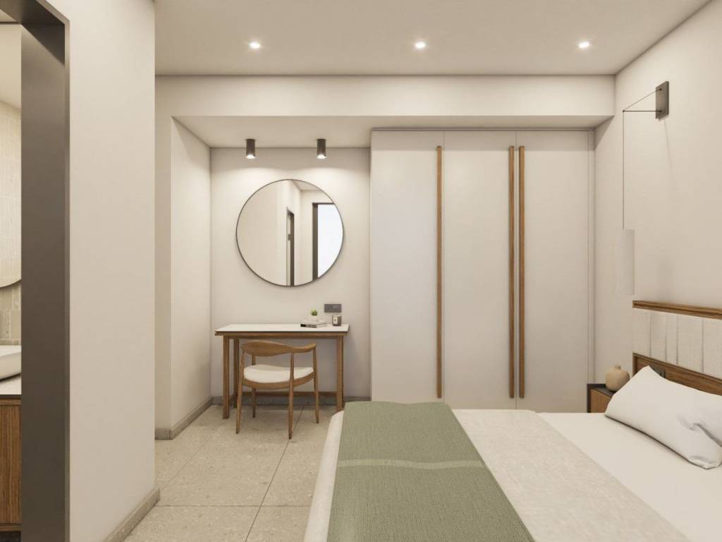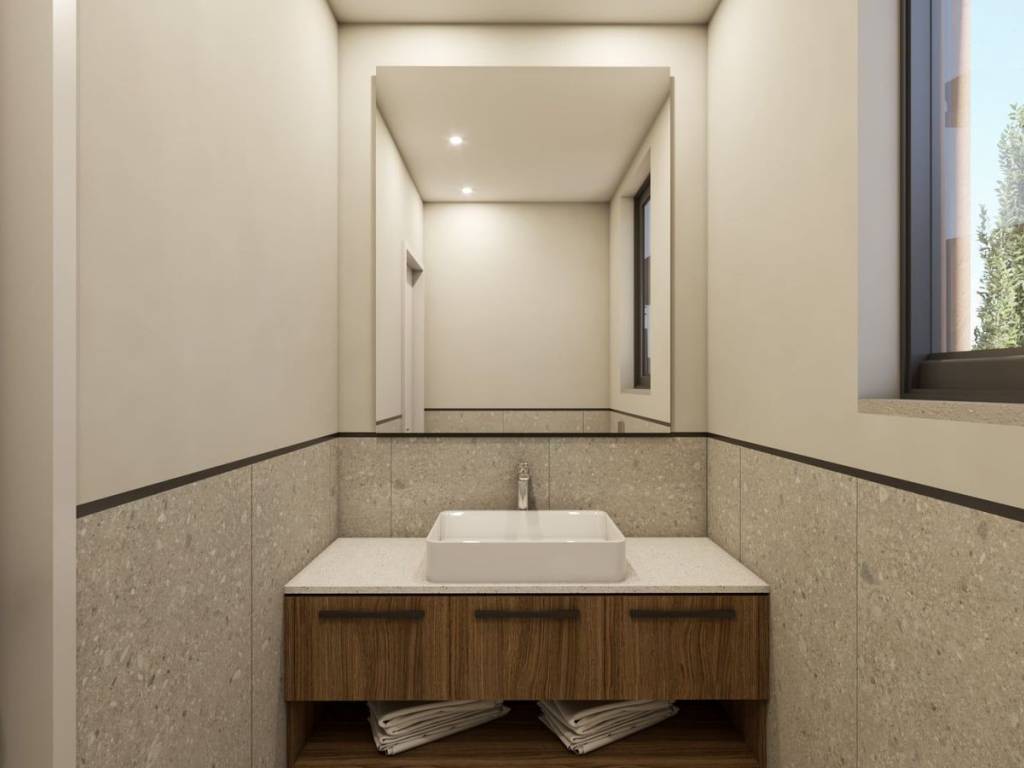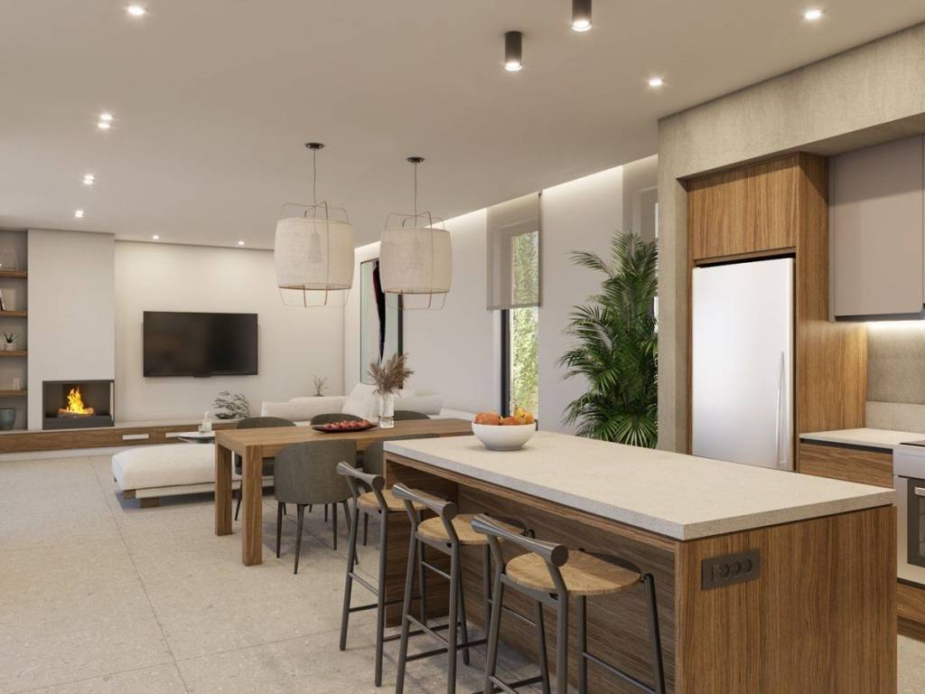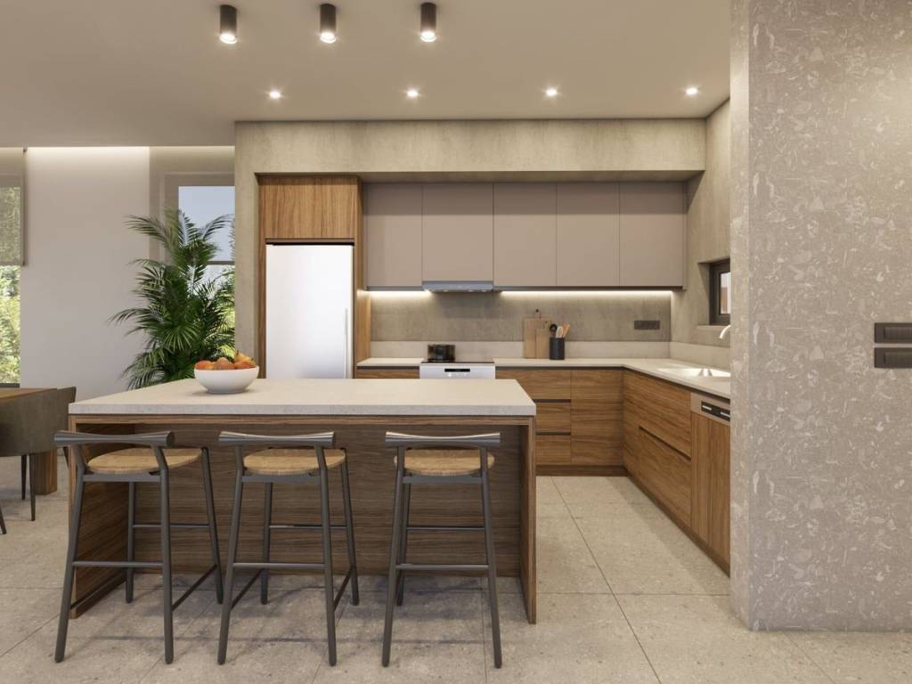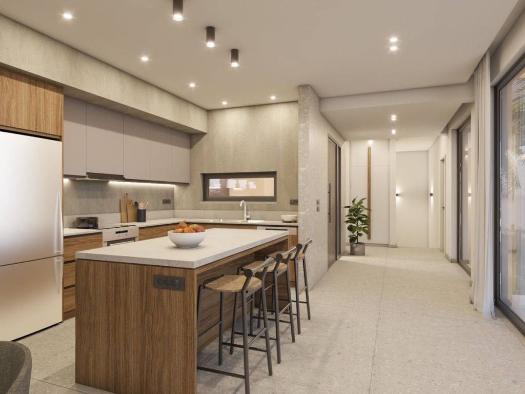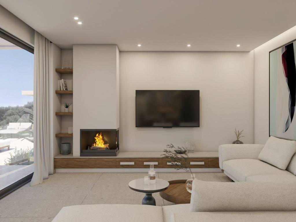 A true landmark of high aesthetic, privacy and breathtaking vistas to the endless blue, nestled among Crete's endless olive groves.As the site has unobstructed views to the sea, the intention is to create a residence which maximises the visual connection to the sea. Along the whole villa, towards the north, stretches the open-air landscaped area, divided into two levels. In front of the common areas is the covered outdoor seating area and the swimming pool; canopies offer protection from sun during the summer.The villa's interior areas are L-shaped, literally embracing the outdoor area as a central point. It's also taking the pool experience to a whole new level. Enjoy the panorama while seated at the specially designed outdoor lounges or catch the sun on the wooden deck.The living areas are designed and developed along the view line, making full use of its potential. Large openings allow natural light to penetrate the interior, adding thermal efficiency during the winter period. The domination of earthy tones and its combination with contemporary materials highlight the form and the simplicity of the design.The villa covers a total of 229 sqm, on a plot of 983 sqm. It enjoys an open plan kitchen with high-end finishes and a stylish bar-stand which becomes the focal point. This area connects seamlessly with the dining area and the living room. This level is also flanked by an en-suite bedroom, oriented towards east. A stairway links the two levels. Downstairs, there are two secluded bedrooms with fitted wardrobes and en-suite bathrooms as well as a storeroom. Both bedrooms lead out to a shared verandah with breathtaking views to the coastline of Platanias and the Mediterranean Sea.A sleek wooden carport provides shelter for two cars and a nicely done pathway serves the accessibility to the villa.