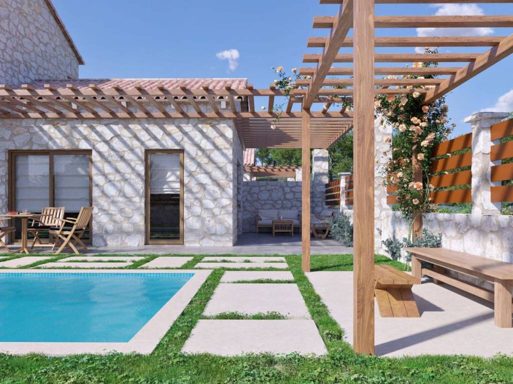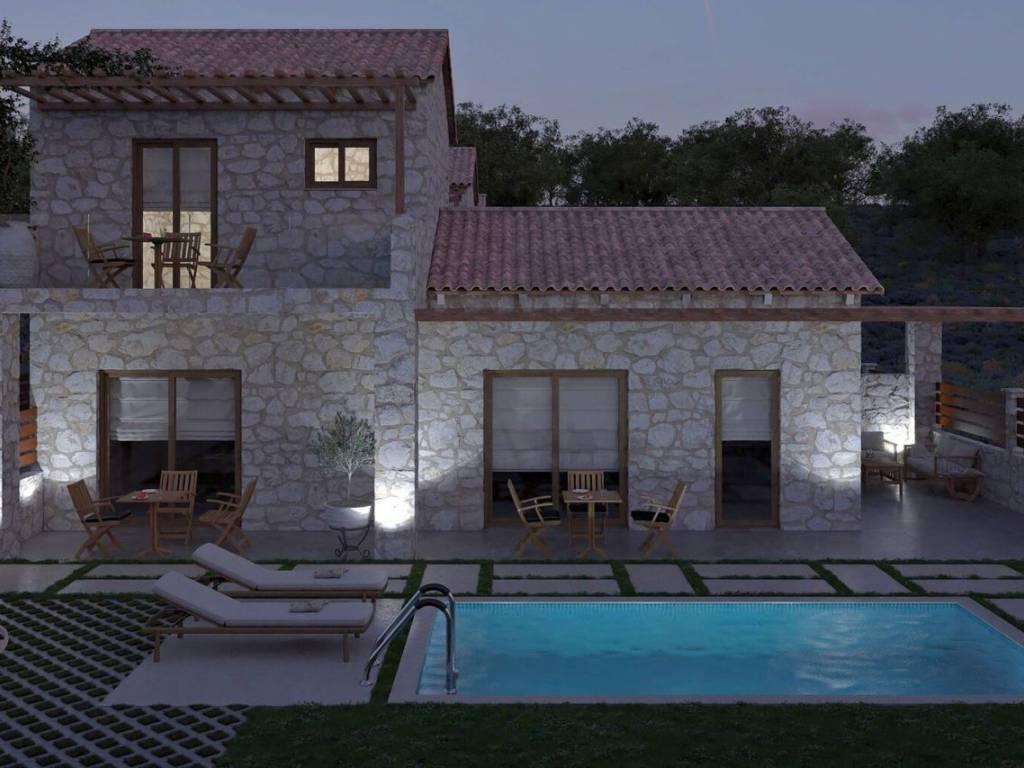 Three new yet traditional stone cottages with private pools and gardens, designed on a thoughtfully selected plot. On one side, the traditional village of Perdika is just a short drive away. At the same time, the stunning beaches of Arillas, Karavostasi, and the Mar-Bella Resort offer cosmopolitan seaside escapes.