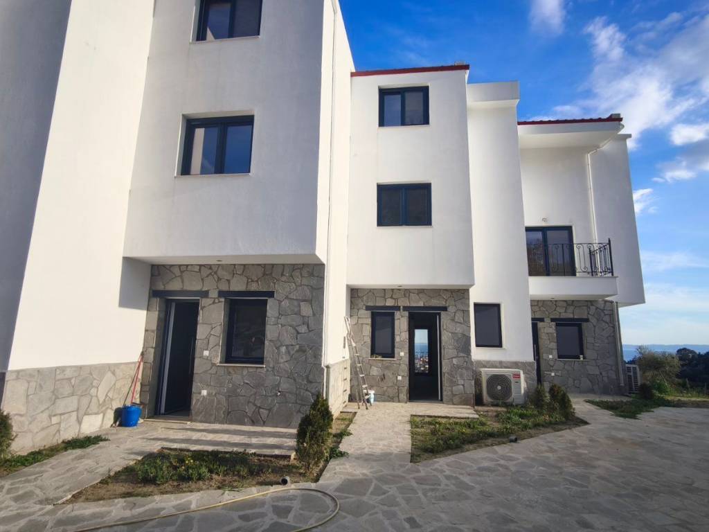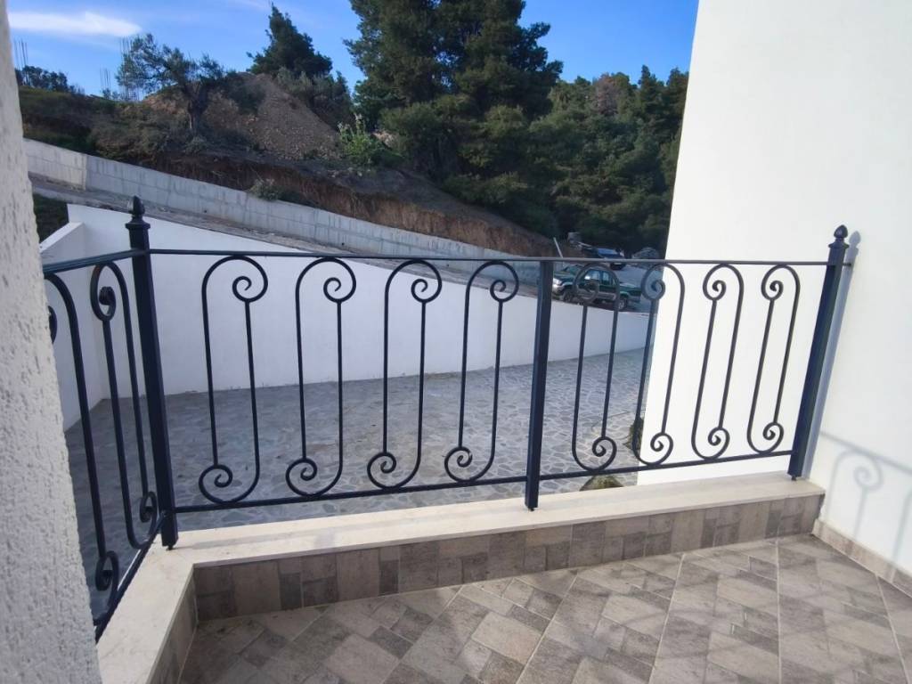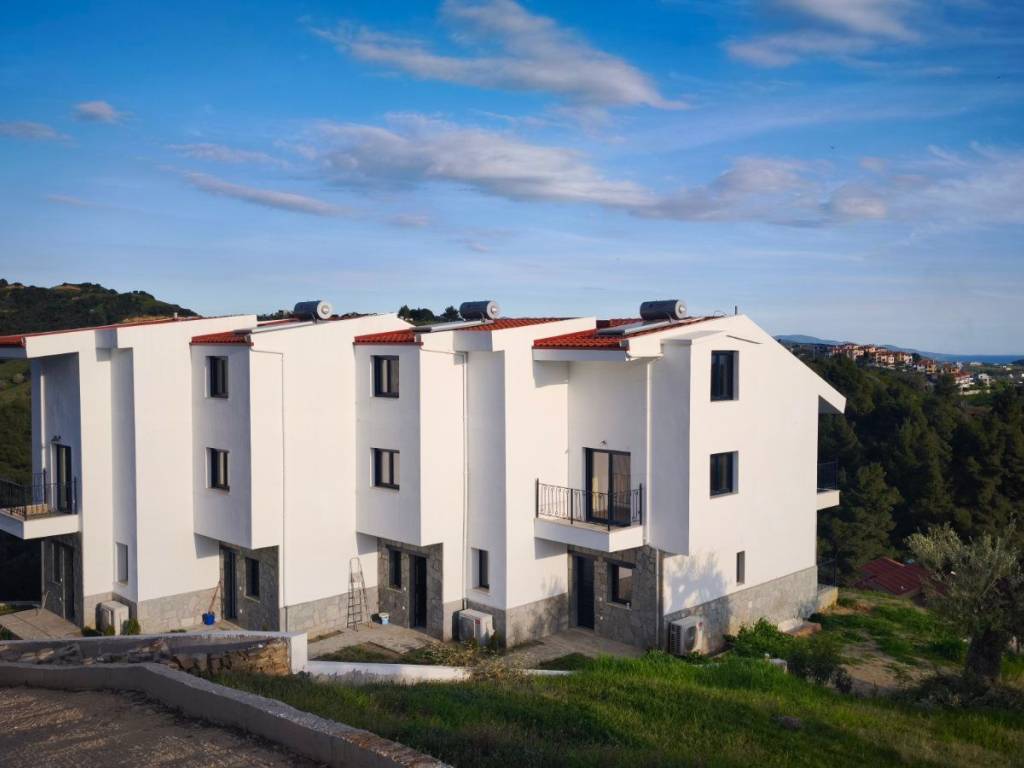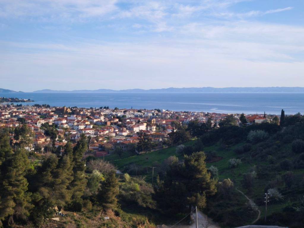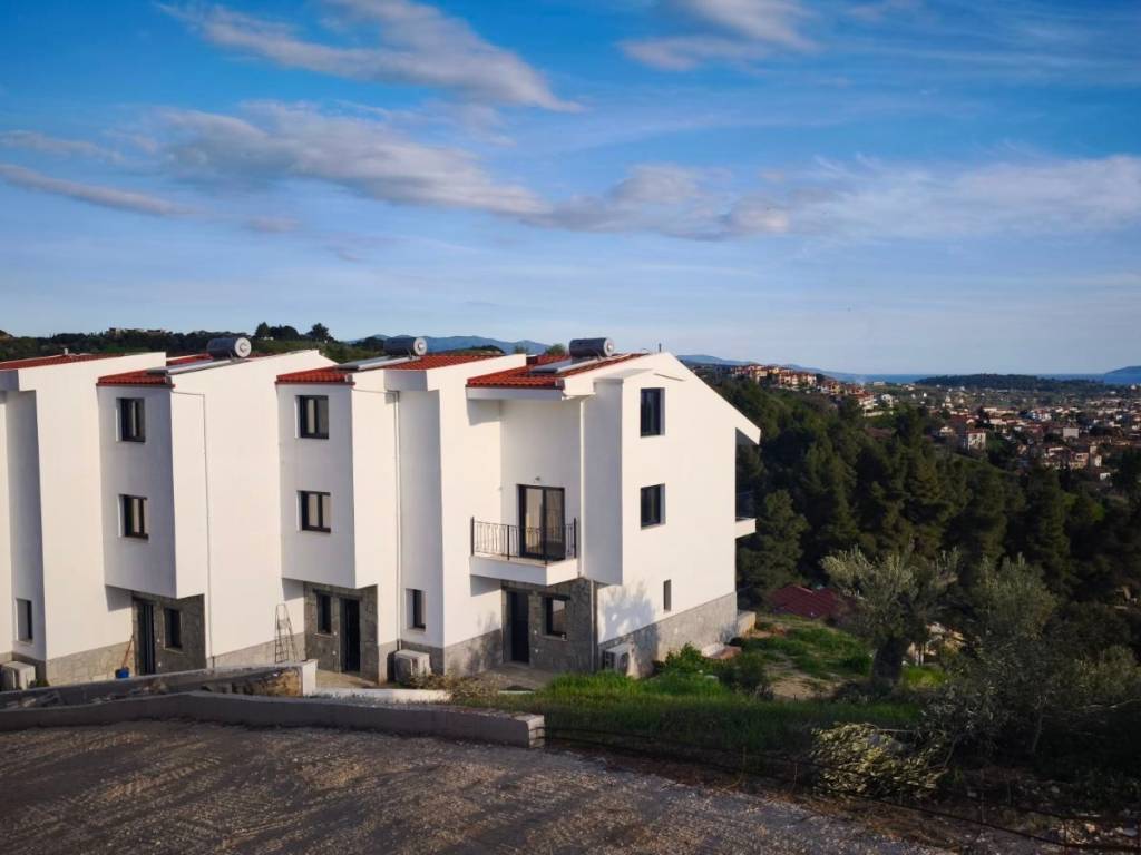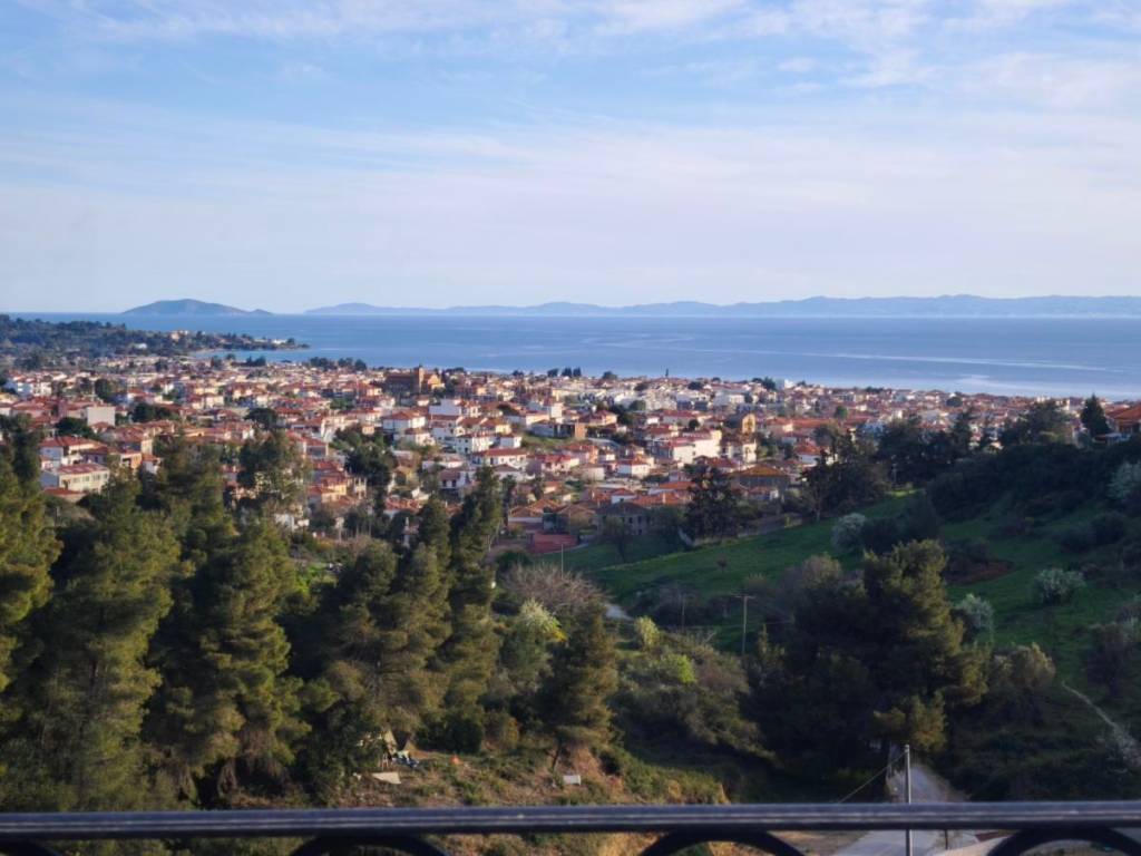 A maisonette in a sparsely populated private settlement, with a fantastic view of the Toroneos Gulf. Surrounded by forest on the edge of the Nikiti hills where the nightingales still sing in a quiet, cool environment. Private paved road with plenty of parking spaces. Ground floor stone construction and whitewashed floors, ample balconies, with underground electricity supplies. Worth seeing. You will love it.