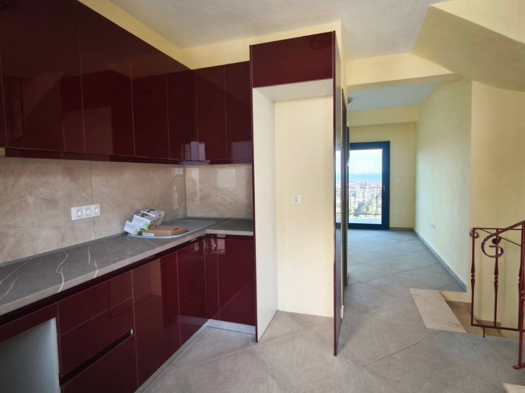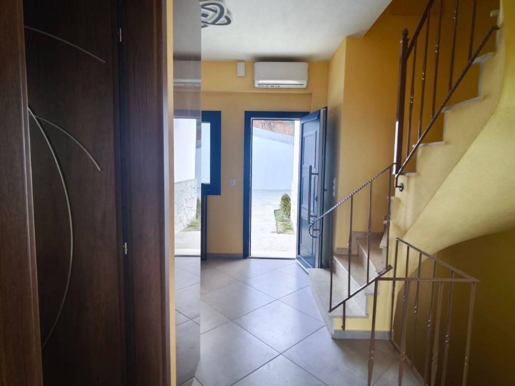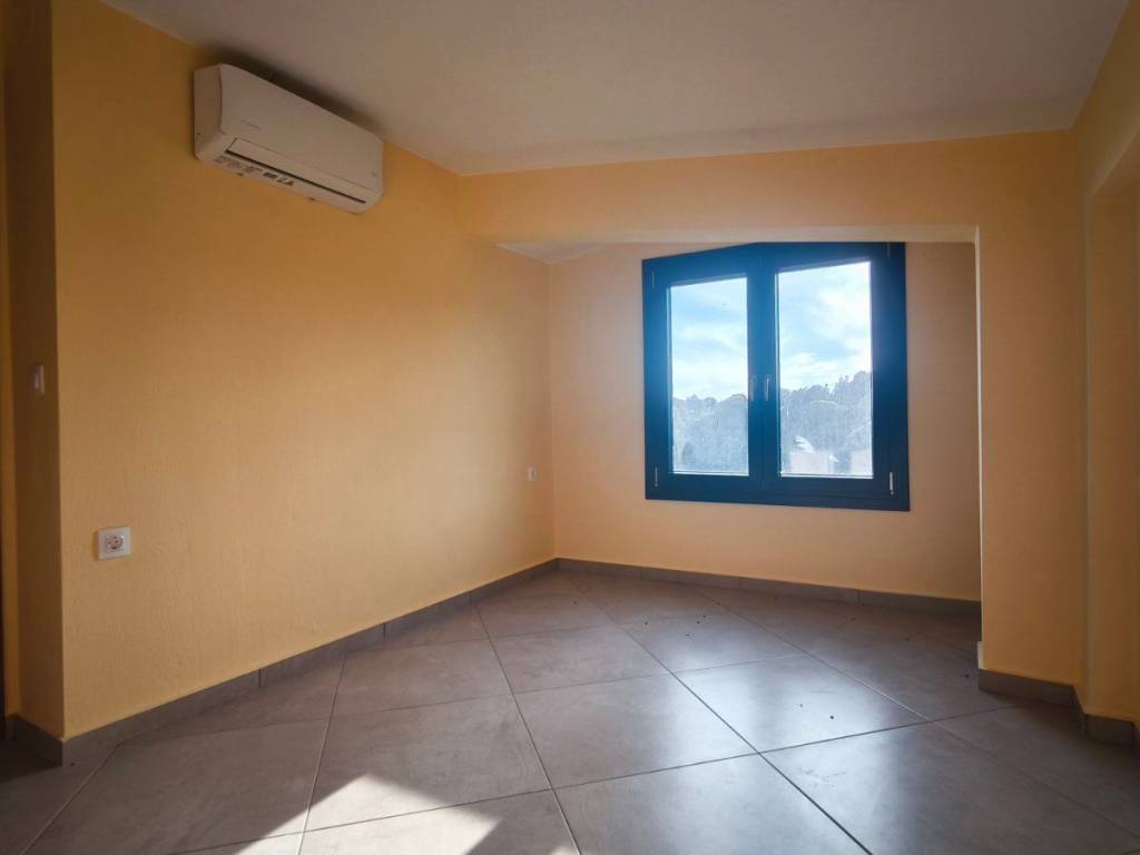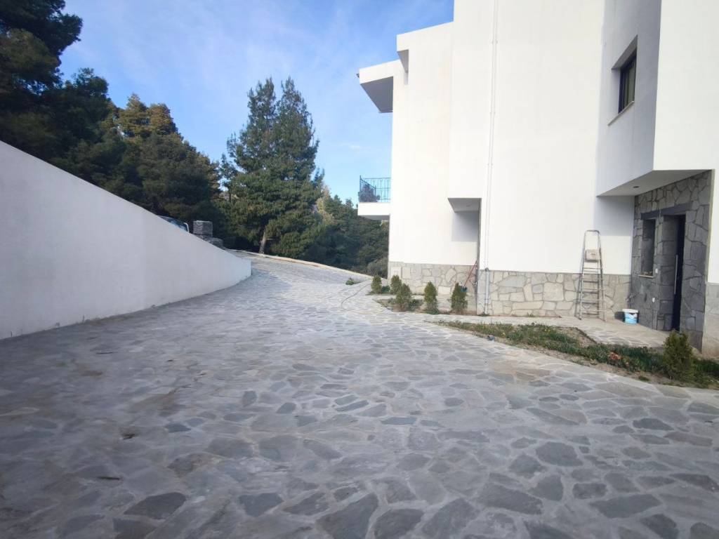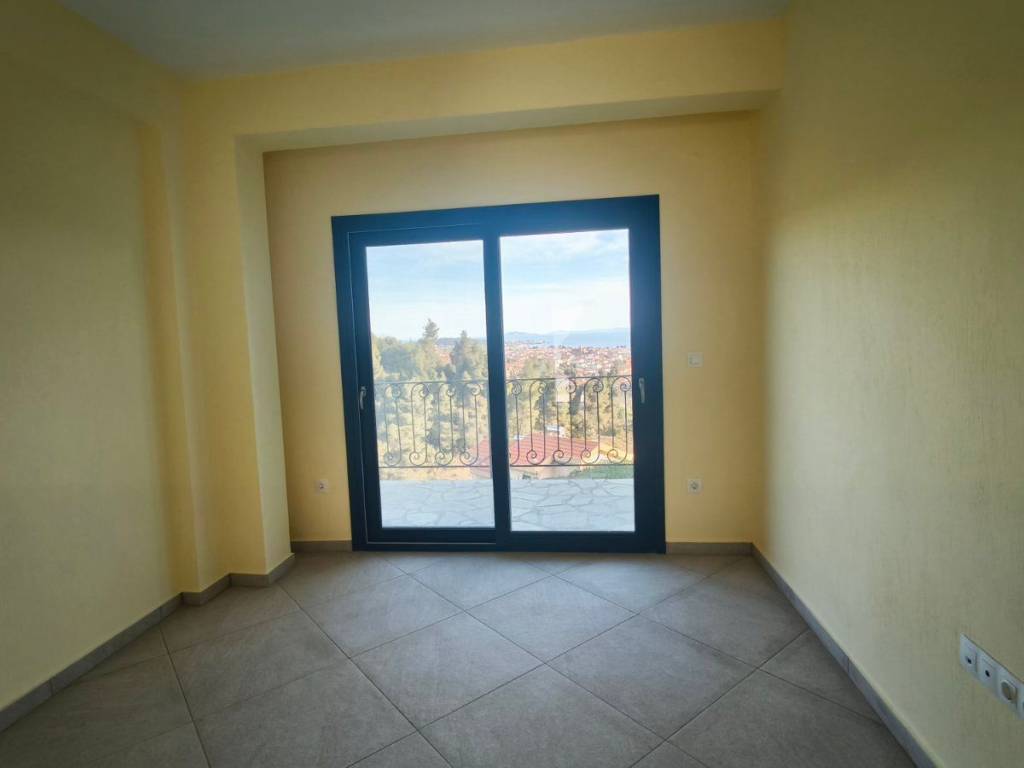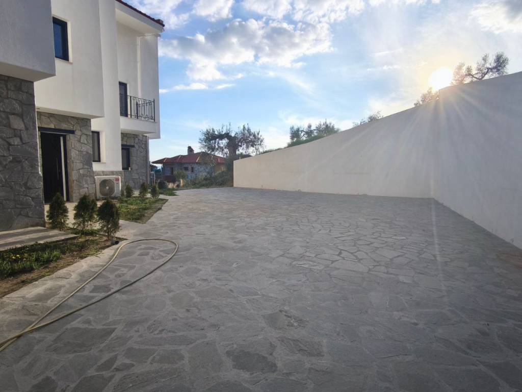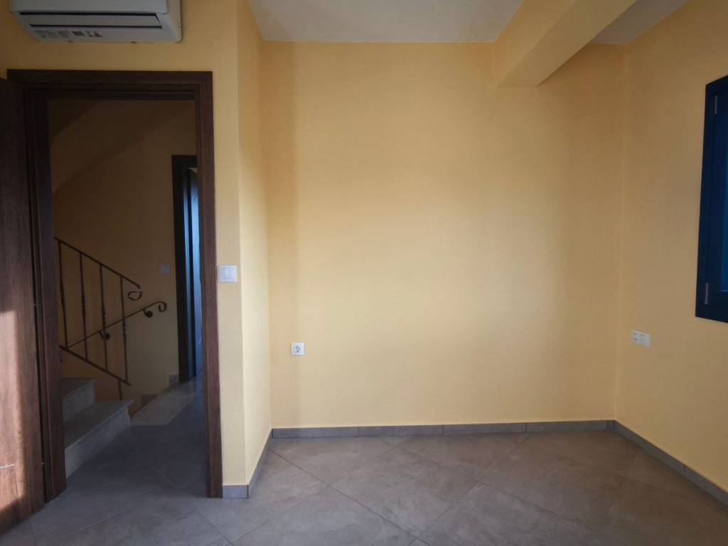 A maisonette in a sparsely populated private settlement, with a fantastic view of the Toroneos Gulf. Surrounded by forest on the edge of the Nikiti hills where the nightingales still sing in a quiet, cool environment. Private paved road with plenty of parking spaces. Ground floor stone construction and whitewashed floors, ample balconies, with underground electricity supplies. Worth seeing. You will love it.