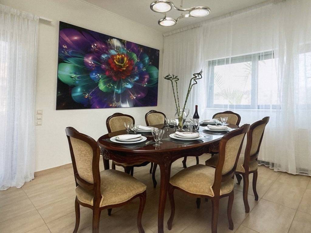 Apartment in a quiet neighborhood of Chania. The building was constructed in 2017 and features diesel heating, air conditioning, two balconies, and parking. The apartment has 2 bedrooms with twin beds, 2 bathrooms, and a large open-concept kitchen-dining-living area. The total area of the apartment is 105 square meters. Pets are not allowed.