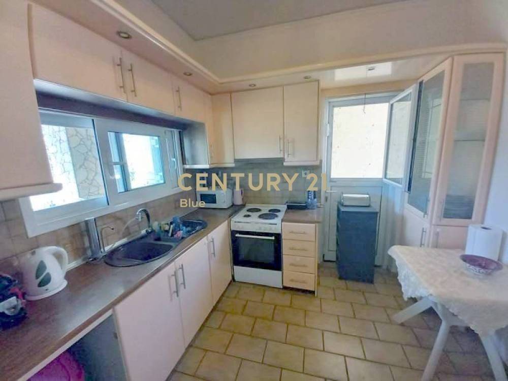 First-floor apartment of 112.90 m². It consists of 2 bedrooms, a bathroom, kitchen, living room, and sitting area. Additional features include: fireplace, aluminum frames with double glazing and fly screens, solar water heater, wardrobes in the bedrooms, storage room, veranda, and awnings. Distances from : Salamina Beach: 350m Park Square: 150m primary school and Kindergarten: 200m Supermarket: 300m High School: 250m Ferry terminal: 2500m Airport: 65 km . The apartment is currently rented by tenants for another six months (rent: 500€/month). Exclusively available through Century 21 Blue.