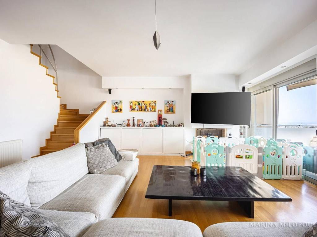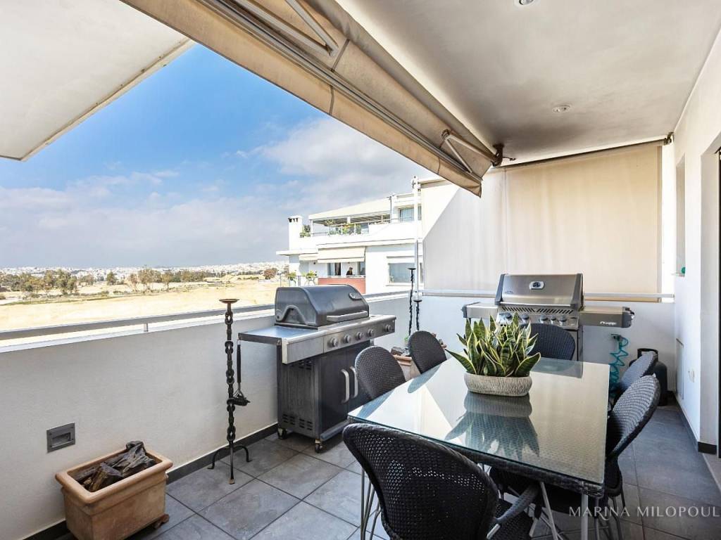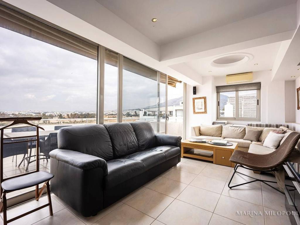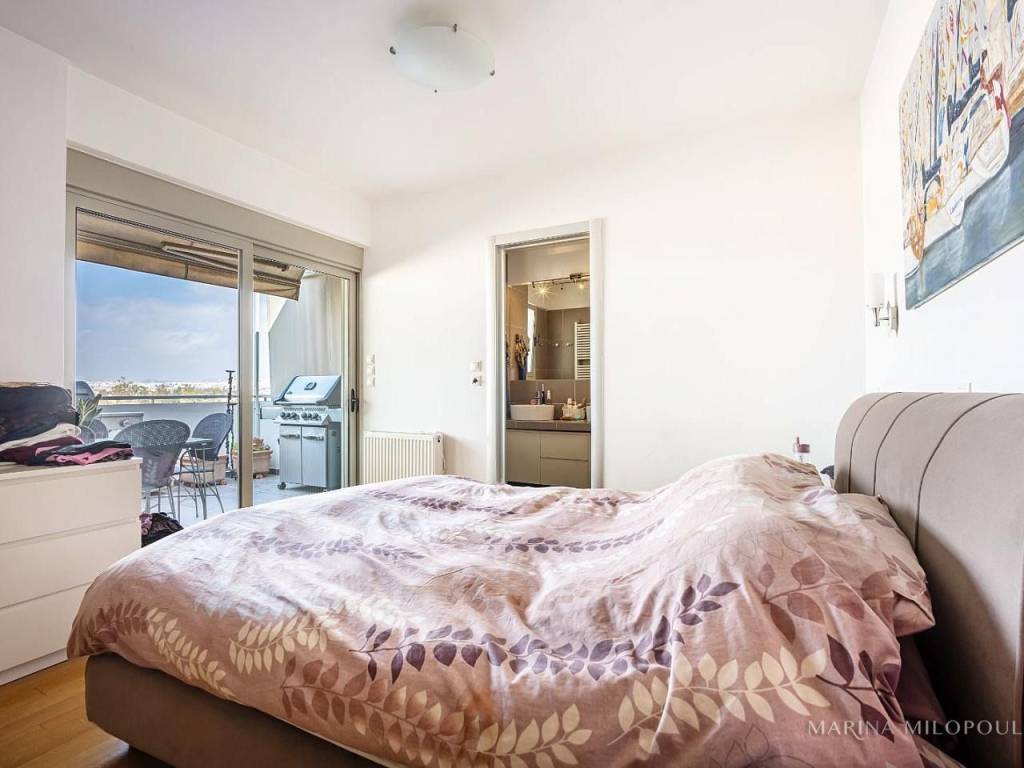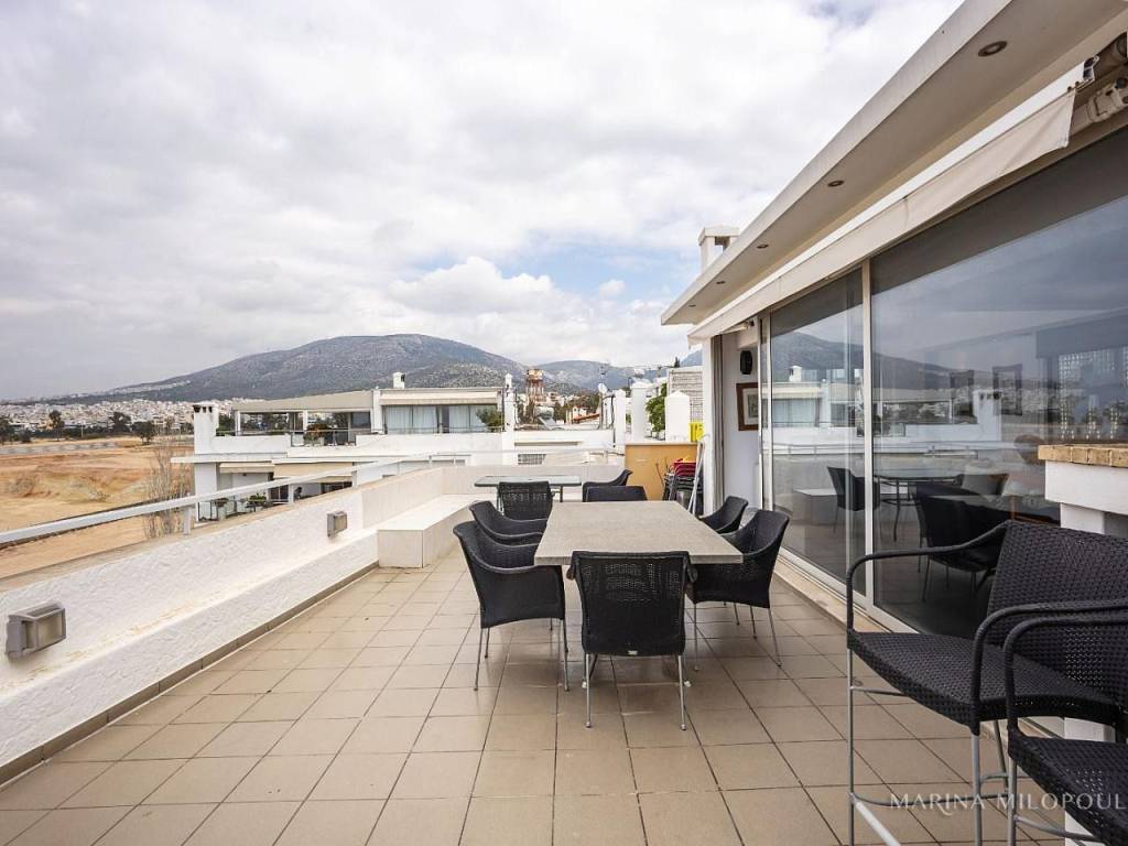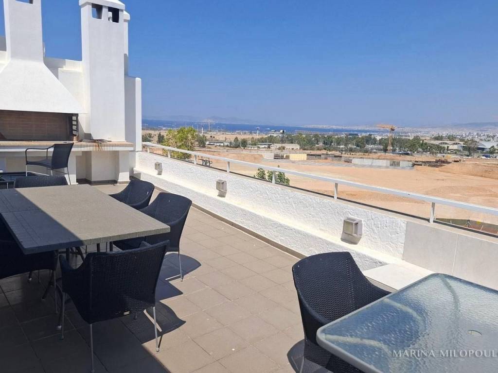 ELLINIKO, on the border with the Metropolitan Park, 3rd floor apartment with a 4th floor attic, total area 180 sq m. It has a sea view and an open horizon towards the Park and the area under development. 3rd floor, 140 sq m, reception area with fireplace, dining room, open kitchen, 3 bedrooms (1 master), 1 additional bathroom, 1 wc, frontage veranda with view of the Metropolitan Park and side sea view. Internal staircase leads to the single-room roof of 40 sq m and large balcony with BBQ. It features oak floors in all areas, large openings with energy-efficient windows, electric shutters, ample closets, a vege kitchen with all built-in appliances, hidden lighting, central air conditioning unit, and air conditioners. Closed basement garage of 55 sq m with storage room. It is part of a well-maintained complex with 2 buildings, 6 apartments each and 2 detached houses. Leased until 10/2025. Zone price 2500€. It is located 450 meters from the current entrance to the Elliniko Metropolitan Park, 500 meters from a large S/M and from the Elliniko Metro station, 2.8 km from the Glyfada Golf Course, 4 km from Glyfada beach, the marinas and the shopping area of Glyfada, 10 km from Syntagma Square and 25 km from the intern. airport.
