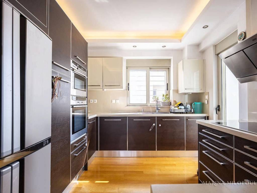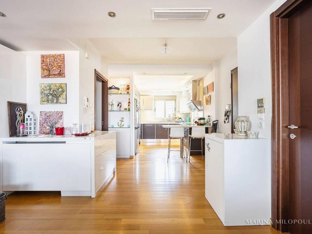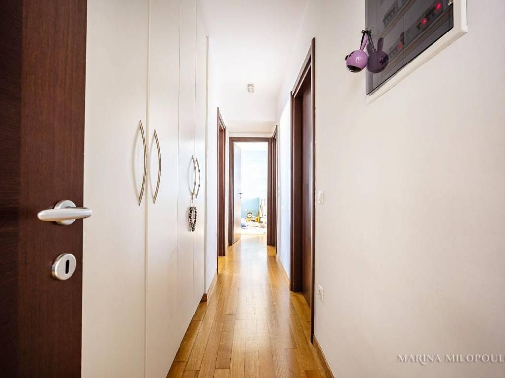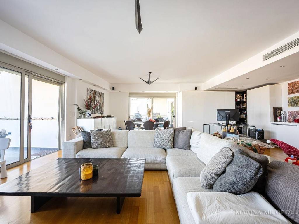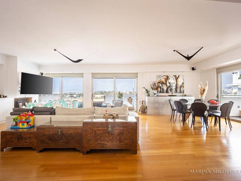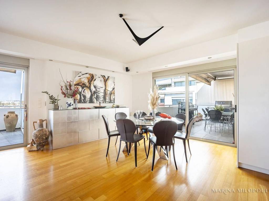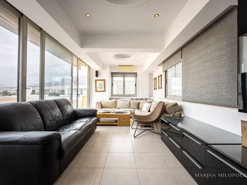 ELLINIKO, on the border with the Metropolitan Park, 3rd floor apartment with a 4th floor attic, total area 180 sq m. It has a sea view and an open horizon towards the Park and the area under development. 3rd floor, 140 sq m, reception area with fireplace, dining room, open kitchen, 3 bedrooms (1 master), 1 additional bathroom, 1 wc, frontage veranda with view of the Metropolitan Park and side sea view. Internal staircase leads to the single-room roof of 40 sq m and large balcony with BBQ. It features oak floors in all areas, large openings with energy-efficient windows, electric shutters, ample closets, a vege kitchen with all built-in appliances, hidden lighting, central air conditioning unit, and air conditioners. Closed basement garage of 55 sq m with storage room. It is part of a well-maintained complex with 2 buildings, 6 apartments each and 2 detached houses. Leased until 10/2025. Zone price 2500€. It is located 450 meters from the current entrance to the Elliniko Metropolitan Park, 500 meters from a large S/M and from the Elliniko Metro station, 2.8 km from the Glyfada Golf Course, 4 km from Glyfada beach, the marinas and the shopping area of Glyfada, 10 km from Syntagma Square and 25 km from the intern. airport.
