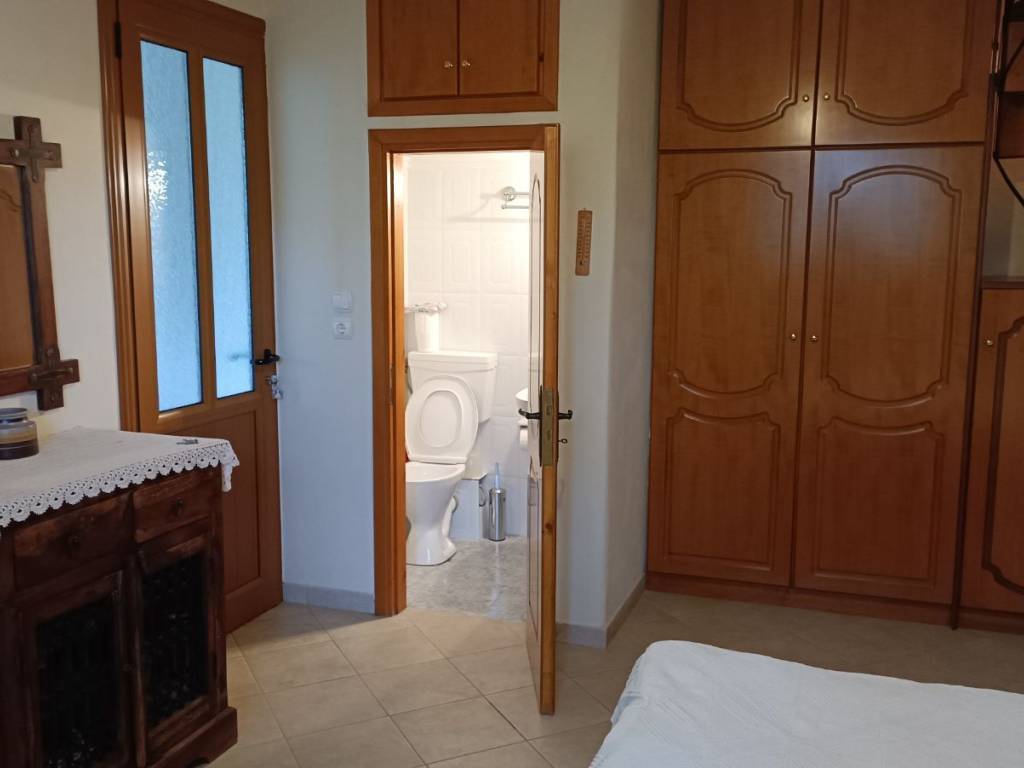 The modern village of Archaea Pisa (Αρχαία Πίσα) is conveniently located just 1500 meters away from the archaeological site of the ancient Panhellenic religious sanctuary and home of the Olympic Games, while the same area was inhabited since prehistoric times. The sanctuary to the gods has one of the highest concentrations of masterpieces from the ancient Greek world, attracting Greek history lovers to visit all year around. Walking to the archaeological site from the maisonette in offer can become a healthy daily habit. Archaea Pisa modern settlement is built on a hill at 150 meters above sea level, overlooking at Alphios River and benefiting from fresh breezes in summer time and breathtaking views of the valley. Taverns offering local delicacies, a convenience store, boutique hotels and road connection to Olympia, Pyrgos, Zacharo, Pylos, Kalamata offer infinite possibilities to those willing to explore the Peloponnese in more detail. A closer look at the Maisonette in offer Built in early 2000 complies with all modern aseismic code structural regulations. Construction was supervised from the owner, a licensed Civil Engineer, while special attention was paid in thermal insulation and water sealing technics for the basement and roof elements. After 20 years of occasional use there is no evidence of moisture or thermal insulation damage. The house with total surface of 44sq.m. is offered fully equipped, furnished with selected wooden items, all electro domestic appliances in good working shape, and handmade decoration curtains and table mats, as depicted in the photos attached. The Maisonette expands in 2 levels. Autonomous external entrance is granted for both levels. Each floor features a basic WC for night use in the basement and a complete bathroom on the first floor, elegantly hidden behind a double hinged wooden door. The basement consists in a roomy space hosting the queen size bed, bedside tables, a sofa that can be turned into a single bed, plenty of built-in wardrobe storage. A wooden internal staircase leads to the upper floor. The upper floor offers an open plan arrangement with a fully operational kitchenette, sitting area that can be transformed into 2 separate beds, or a double bed, a dinning table with 4 chairs, and carefully selected decorative items. The Maisonette may benefit from an individual veranda overlooking to a garden and partial mountain and village views. A commonly used are equipped with a marble table can be found just outside the first-floor entrance. Access is provided via a commonly used paved internal pathway, away from road nuisance, but only 15 meters from possible car parking. While part of a traditional family-owned multiple housing project, it offers a quiet environment and privacy, away from busy Olympia village. Hot summer nights do not require the use of air conditioning at the basement level. Air-conditioning is provided for the upper level instead.