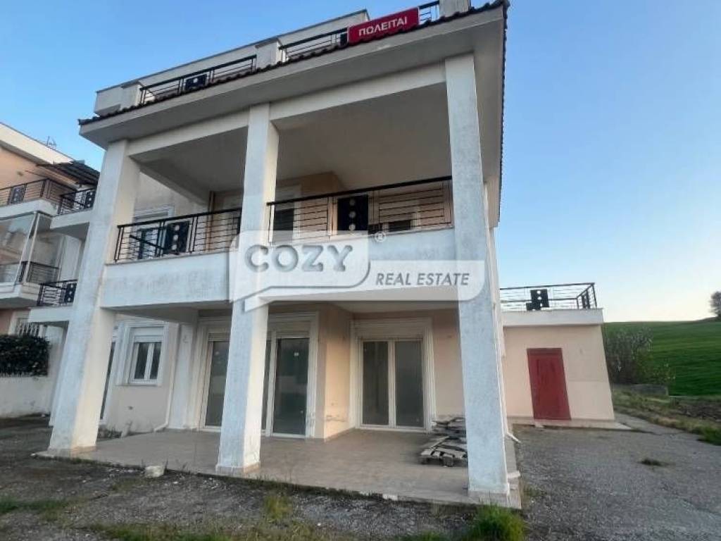 In the rapidly developing residential zone of Paliouri, in a strategic location with direct access to Thessaloniki and only 9 km from the airport, a high-spec semi-finished maisonette is available for sale, with a total gross surface of 380 sq.m. (281 sq.m. net), set on a land plot exceeding 12,000 sq.m.