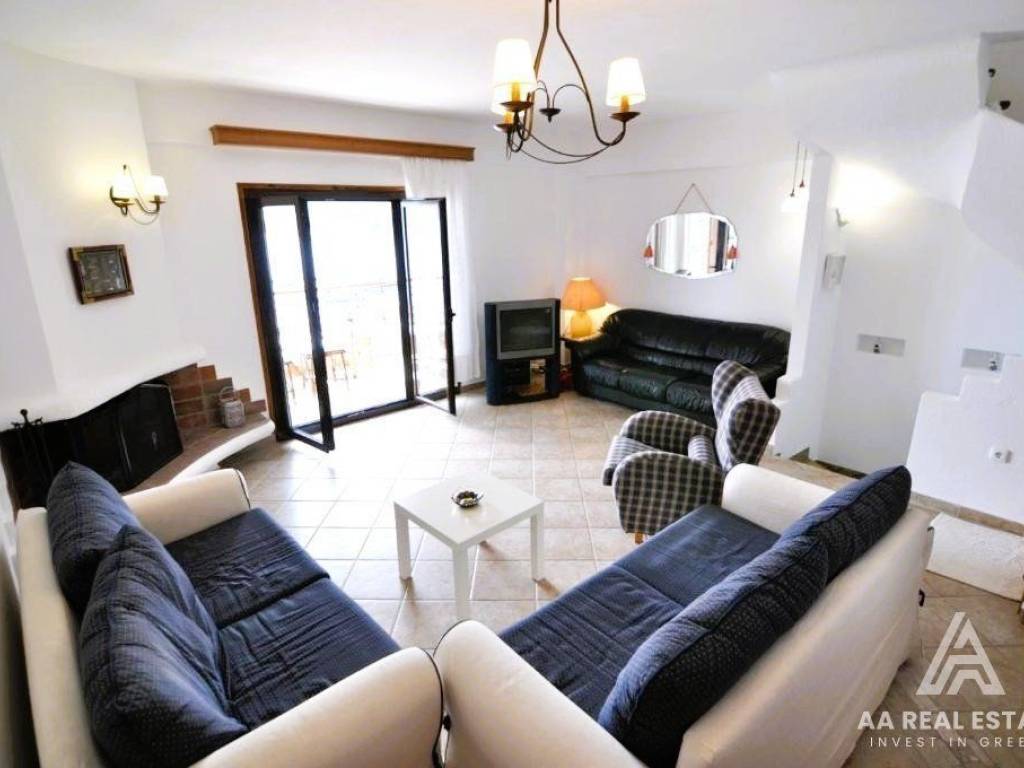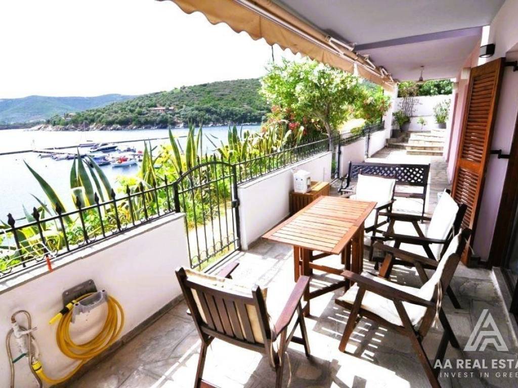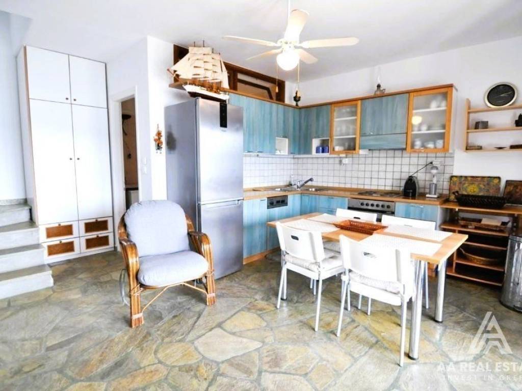 PYRGADIKIA HALKIDIKI-FOR SALE First to the sea, fully furnished and equipped, bright maisonette with a wonderful view from its comfortable verandas on all floors. Area 105sqm, on three levels, built in 1996 with a view of the vast blue and green of the settlement of Pyrgadikia that reaches the sea. in a quiet and welcoming complex with direct access. Layout: Ground floor: Spacious living room with sofa bed, kitchen, storage room and bathroom-has a separate entrance and wood stove. veranda 1st floor: living room with fireplace and sofa that becomes a bed, veranda 2nd floor, 2 bedrooms, large bathroom and veranda Double glazed wooden frames, screens, fireplace, air conditioning, tiled and stone floors. A wonderful location in front of the sea invites you to relax under the sun or moonlight, with an unobstructed view of the sea for unique moments of relaxation and tranquility. Enjoy the air and the view of the sea in all its glory from the balconies on all floors, ideal for the hours of the day when you want to calm down or enjoy your drink or coffee. If you are looking for the ideal destination to escape from everyday life and experience moments of absolute tranquility overlooking the sea, this maisonette is the right refuge for you. The balconies with the view and the quiet environment create the perfect space for relaxation and enjoyment of your holidays. Located in the village, next to restaurants, shops, easy access, 40 kilometers from Ouranoupolis and Mount Athos, 55 kilometers from Nea Moudania, 86 kilometers from Thessaloniki airport. It is an ideal choice for a holiday home as well as a tourist farm. distance from the beach 5, number of floors in the building 3, painted, terace, type of glass duble, energy class Δ, inside settlement, country house, investment, furnished, indoor lader, zone residential, view, frames wooden-aluminium, equiped, security door, access asphalt, facade, awning, touristic leasing, flooring type, bright