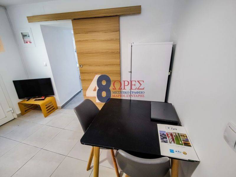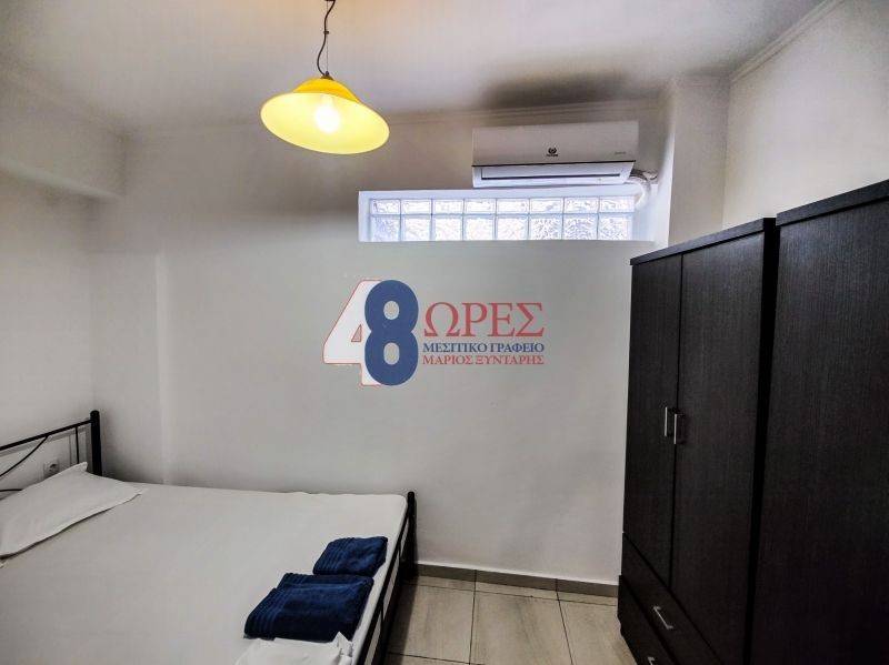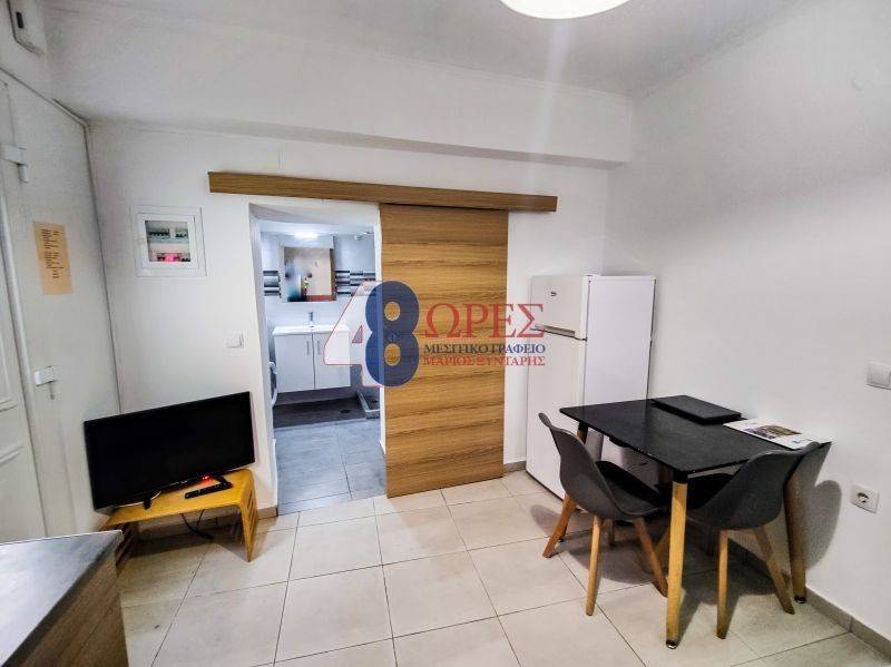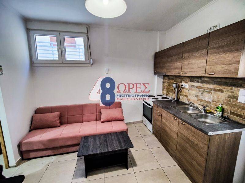 Code: 5852 In the center, a ground floor apartment with a total area of 30 sq.m. is for rent. It consists of a bedroom, a single kitchen-living room and the bathroom. It has full furniture and equipment, autonomous cooling - heating with air conditioning, while the rent price includes water, electricity and internet bills.