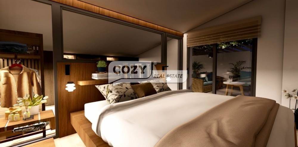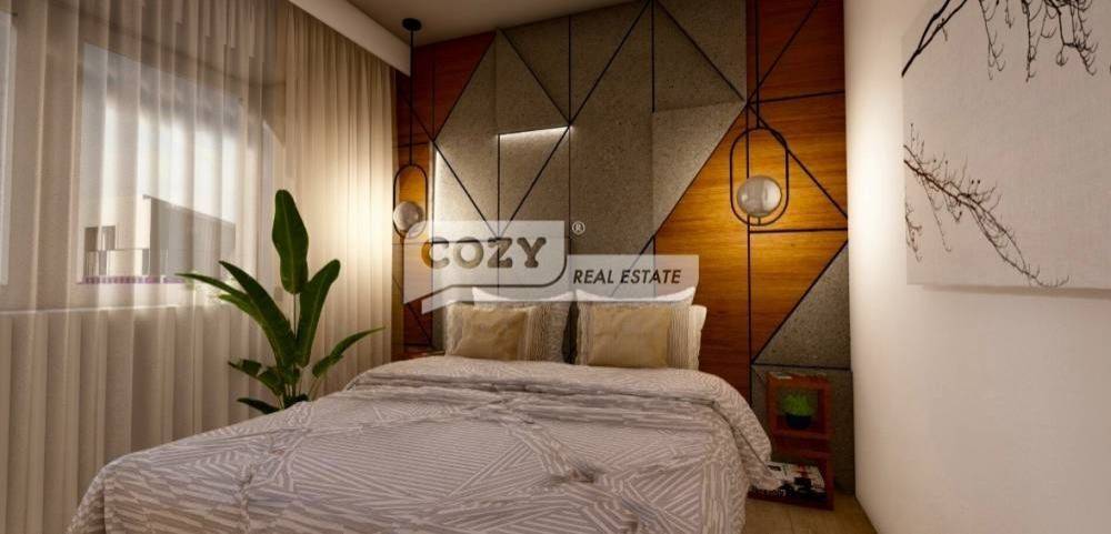Thessaloniki, Thermi: For sale luxury apartment of 58sq.m. with gas heating on the 1st floor with elevator. It consists of 1 bedroom, 1 living room with kitchenette and bathroom. It is located in a newly built impressive complex that has a beautiful courtyard that hosts a playground for the residents of the complex. Underground parking space with cameras is available +15.000€.