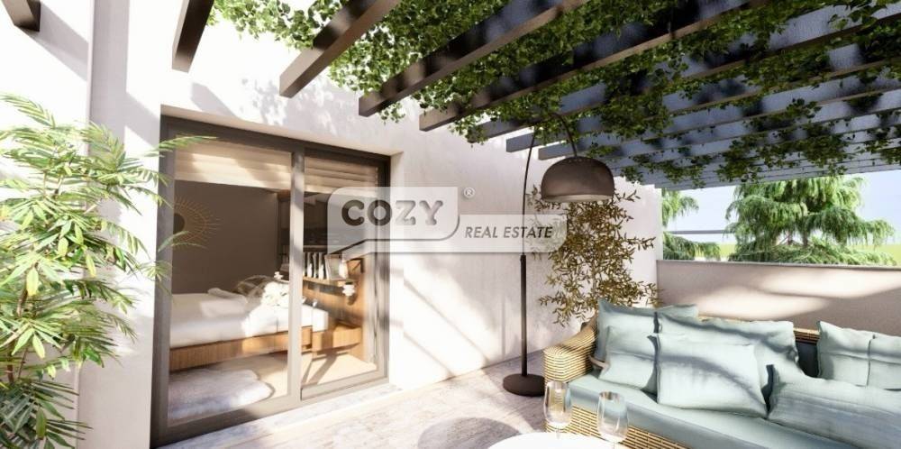 Thessaloniki, Thermi: For sale luxury maisonette 91sq.m. 2 levels with gas heating on the 2nd floor with elevator. It consists of 2 bedrooms, 1 living room with kitchen and 2 bathrooms. It is located in a newly built impressive complex that has a beautiful courtyard that hosts a playground for the residents of the complex. Underground parking space with cameras is available +15.000€.