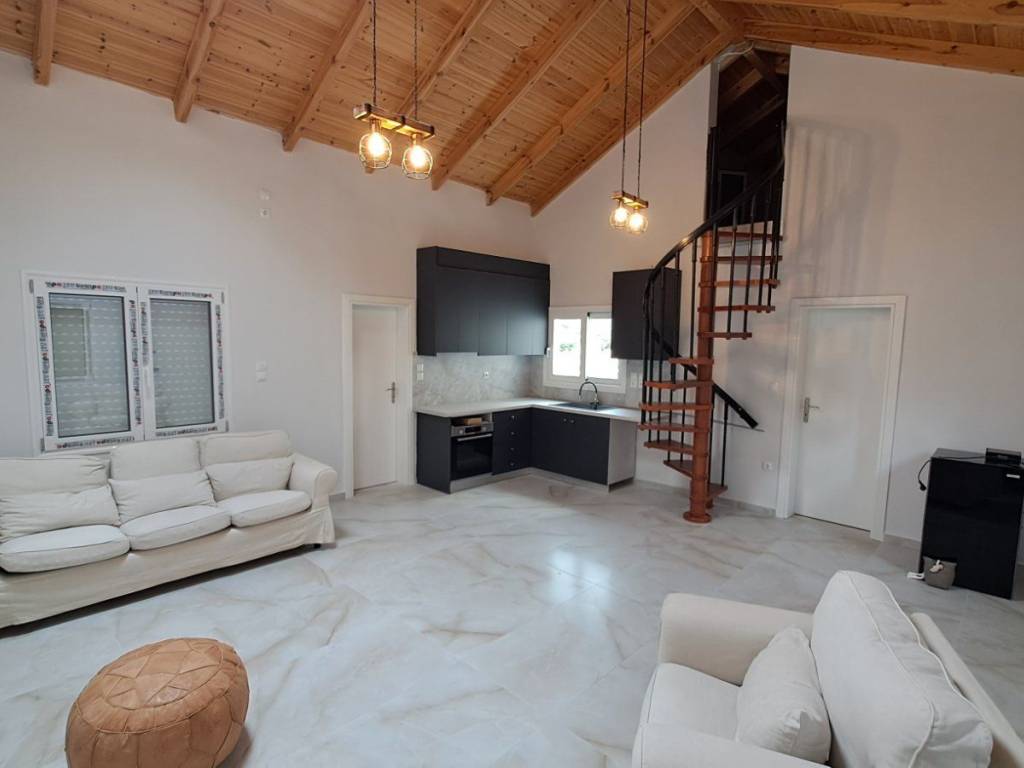 Detached house of 53.3 sq.m. with an additional 11 sq.m. loft. One bedroom on the ground floor and another one in the loft. Open-plan living room and kitchen. The entire house was fully renovated from the foundations to the roof in 2026, featuring thermal insulation (external façade insulation) and Europa window frames. In the living room there is a 24,000 BTU Mitsubishi air conditioner, and in the bedrooms there are 9,000 BTU air conditioning units. The plot is 250 sq.m. and includes one olive tree, two orange trees, one lemon tree, one pomegranate tree, and one loquat tree. The property also includes an additional 50 sq.m. plot (located opposite) with a concrete base, which can be used for parking up to two cars or for placing a mobile home. Quiet and very friendly neighborhood. From one of the verandas there is a sea view, with the sea located approximately 1,950 meters from the house. Also includes a 14 sq.m. basement auxiliary/storage space.