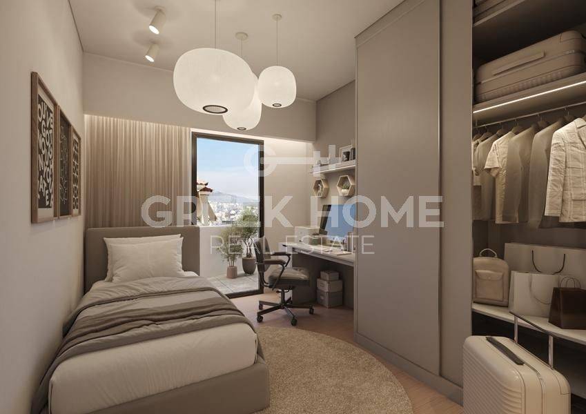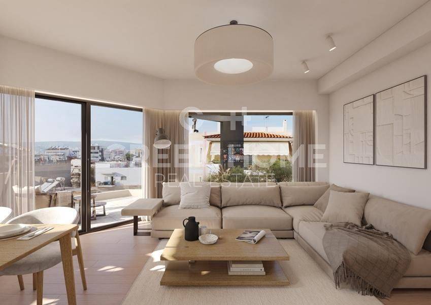 Petroupoli, Centre - Floor Apartment 83sqm bedrooms 3, 1st, newly built, year built 2026, energy class A+, living room, kitchen, bathroom, wc, heating type: autonomous (heat pump), air condition, a/c type fan coil, parking ground floor, quiet, dual aspect apartment, luminous, corner, unobstructed view view, frontage, painted, electric roller shutters, storage space 22sqm, solar heater, external thermal insulation, balconies, large balconies, elevator, aluminum frames, double glazed windows, door screen, ceramic tiles floors, separate kitchen, secure door, video doorbell, luxurious, pets allowed, east-southern orientation, close to market (up to 100m), close to square (up to 100m), close to super market (up to 100m), close to school (up to 200m).