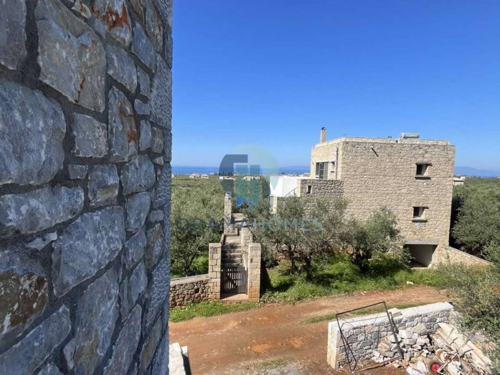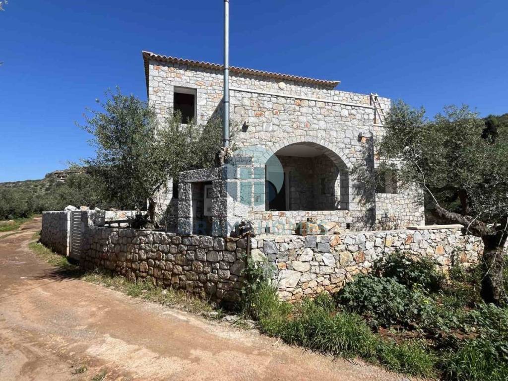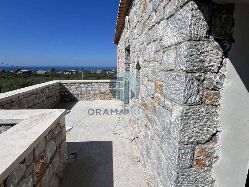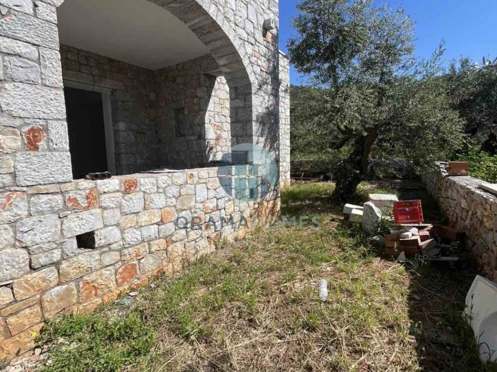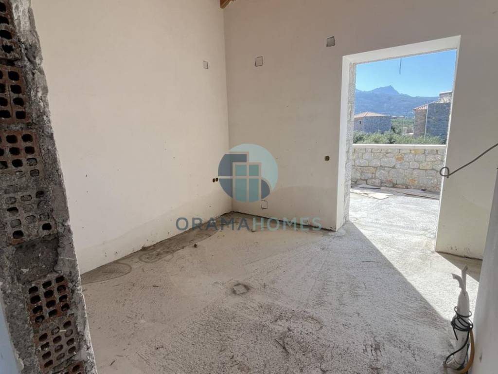 For sale under construction maisonette in Riglia, Mani. It is a 120sqm house on a 331sqm plot with a perimeter garden. The ground floor of 72sqm consists of a living room/kitchen with fireplace, 1 bedroom and 1 bathroom. It has 2 verandas, where from the covered veranda of the kitchen you have access to the garden. With an internal staircase the upper floor consists of 2 bedrooms and 1 bathroom. Each room has a balcony with unobstructed views of the sea and the mountain. The garden extends around the perimeter of the house and is fenced. Next to the entrance a garage can be built, and on the back side which provides more privacy, a barbecue area or a small swimming pool. It has pre-installation for a heat pump and alarm. The house is sold at 400,000 euros in its current condition. In its completed phase, ready for occupancy 500,000 euros
