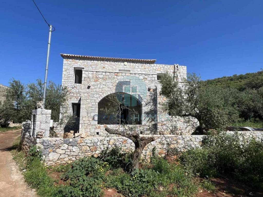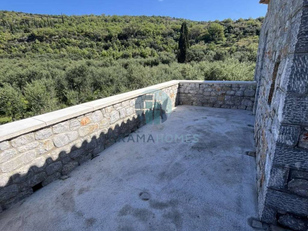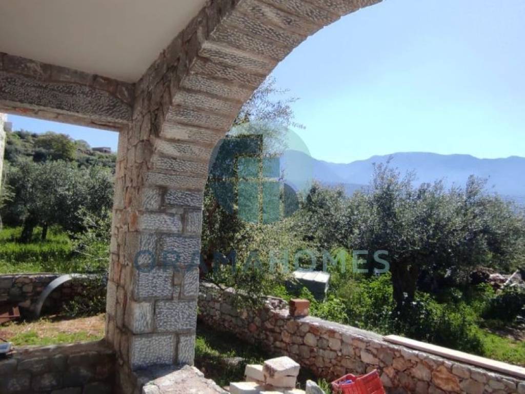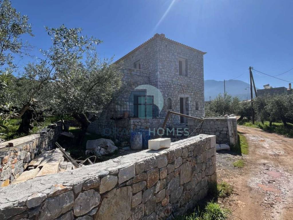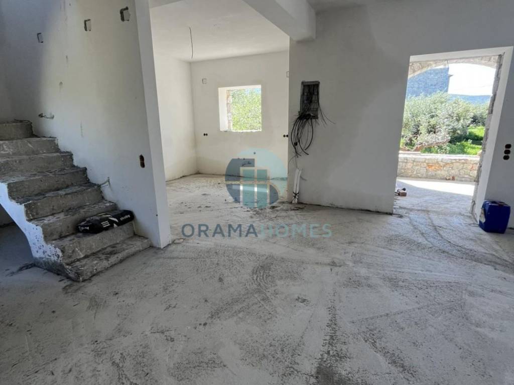 For sale under construction maisonette in Riglia, Mani. It is a 120sqm house on a 331sqm plot with a perimeter garden. The ground floor of 72sqm consists of a living room/kitchen with fireplace, 1 bedroom and 1 bathroom. It has 2 verandas, where from the covered veranda of the kitchen you have access to the garden. With an internal staircase the upper floor consists of 2 bedrooms and 1 bathroom. Each room has a balcony with unobstructed views of the sea and the mountain. The garden extends around the perimeter of the house and is fenced. Next to the entrance a garage can be built, and on the back side which provides more privacy, a barbecue area or a small swimming pool. It has pre-installation for a heat pump and alarm. The house is sold at 400,000 euros in its current condition. In its completed phase, ready for occupancy 500,000 euros