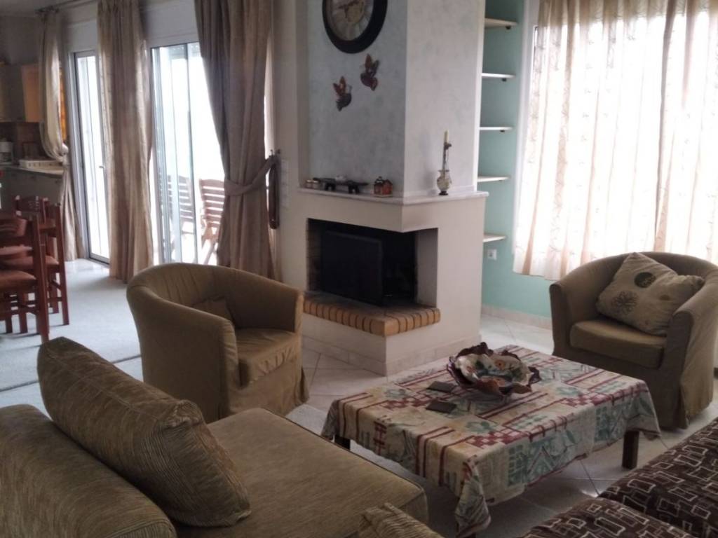 Porto Rafti: Detached house of 130 sqm on a 750 sqm plot with large verandas and an open horizon view. It is full of light and has autonomy. The house is located in a quiet area, close to the centre and to the sea, around 500 m. It is also 12 klm distance from the airport and 40 klm from Athens. It has radiator heating, AC, security door,fireplace, autonomous heating and solar water heater. It is fully equipped with all electrical household appliances.It also provides 3 parking spaces. It offers privacy and quiet making it an ideal choise for couples and families.