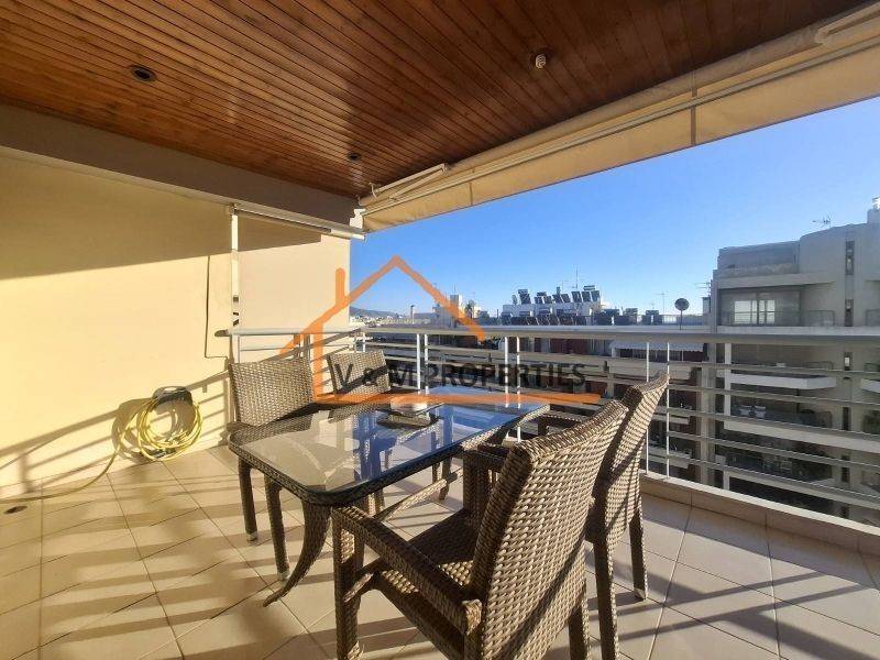 Nea Smyrni – City Center. Spacious and bright 118 sq.m. apartment, located on the 7th floor, with two closed parking spaces. It comprises two comfortable bedrooms, a large living room with a fireplace, a separate kitchen, a bathroom and a WC. Features include individual natural gas heating, double-glazed windows, awnings, and a large veranda with open views. Situated in an excellent location, just a 5-minute walk from Nea Smyrni’s main market and central square.