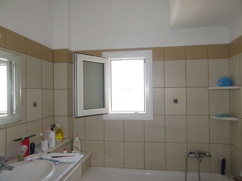 The apartment has quite good space arrangement and it is fully equipped with furniture. It has 2 bedrooms with double bed, air condition, and large wardrobes each. The windows are framed with aluminum shutters and sieves. Externally, there is also a security door. A bathtab is provided into the bathroom, which is quite spacy, laundry machine is also included. Hot water is supported by a Solar powered boiler system of a good energy performance. The kitchen has plenty of working spaces, a new refrigerator and a good variety of cooking utensils. Its cosy living room is attached to the kitchen. The balcony is relaxing and very big, with a roof of pergola and a great view to the sea. In to the flowery shared garden, there is a barbeque. Easy parking on the street, low cost common charges. Nearby there are butchery, pharmacy, local market and a bus stop. Nearest beach, 10 minutes’ walk.