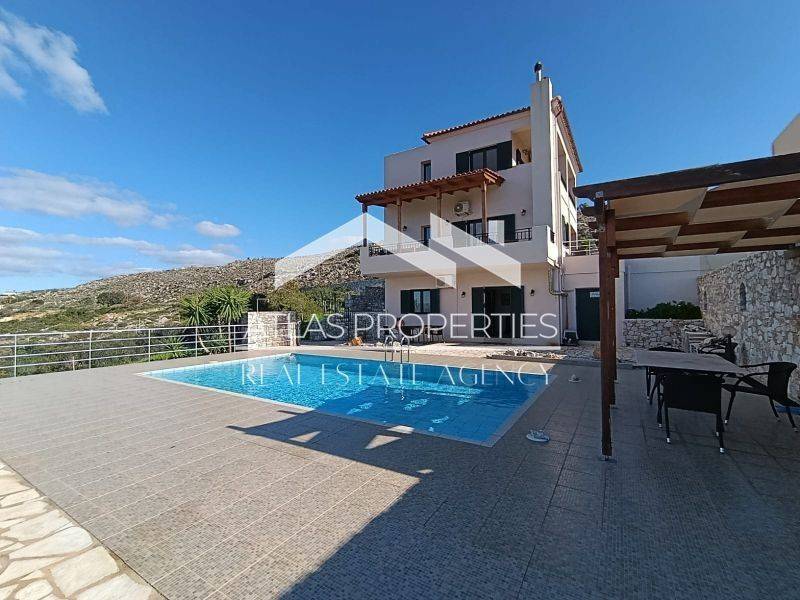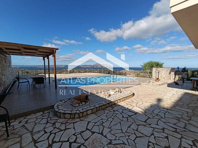 Nestled in the enchanting area of Kokkino Chorio in Chania, this exceptional villa enjoys a prime location with unobstructed panoramic views of the endless blue of Souda Bay and the majestic White Mountains. The property, with a total area of 186 sq.m., is set on a private plot of 1,954 sq.m., offering absolute tranquility, privacy, and a high standard of living. The residence is developed over three levels, featuring a functional and comfortable layout, making it ideal as a permanent home, a luxurious holiday retreat, or a high-yield rental investment. The middle level, which serves as the main entrance, hosts a bright open-plan living room and kitchen area, complete with a fireplace that creates a warm and inviting atmosphere. From here, there is direct access to a spacious covered veranda with a tiled pergola—perfect for relaxing moments while enjoying breathtaking views. A full bathroom is also located on this level. On the upper floor, there are two spacious bedrooms with built-in wardrobes and access to a south-facing balcony, along with a comfortable bathroom. The lower level features a second living area, an additional bedroom with a double bed, a bathroom with a shower, and storage spaces. This level also provides direct access to the outdoor area and the swimming pool, enhancing the sense of independence and privacy. The outdoor space is equally impressive, featuring a large private swimming pool, a landscaped seating area, an outdoor shower, and an extensive, well-maintained garden of approximately 1,250 sq.m., offering numerous possibilities for use. The property is fully enclosed by a stone-built wall and includes an electric gate, as well as ample parking space for 4 to 5 vehicles. Built in 2007, the villa is equipped with autonomous oil heating on each level, aluminum window frames with double glazing and insect screens, air conditioning, a solar water heater, built-in wardrobes, and tiled flooring throughout. It is sold fully furnished and equipped with electrical appliances, ready for immediate use or investment. The location is ideal,  just 500 meters away from the sea, while popular destinations such as Plaka, Almyrida, and Kalyves are within a short distance. The city of Chania is 27 km away, and the airport is 36 km away, making this property an excellent choice for both private use and investment with high returns. A rare opportunity to acquire a property that combines a prime location, stunning views, and an exceptional quality of life in the heart of Crete.