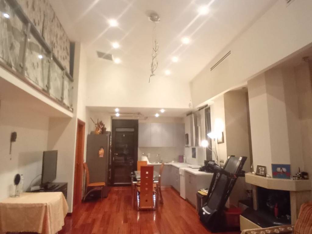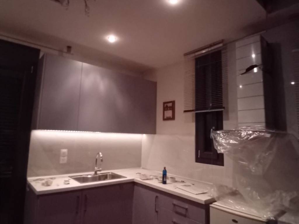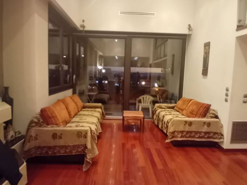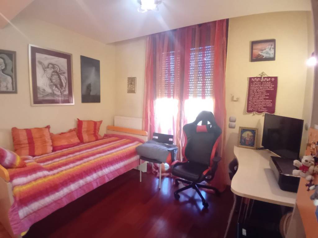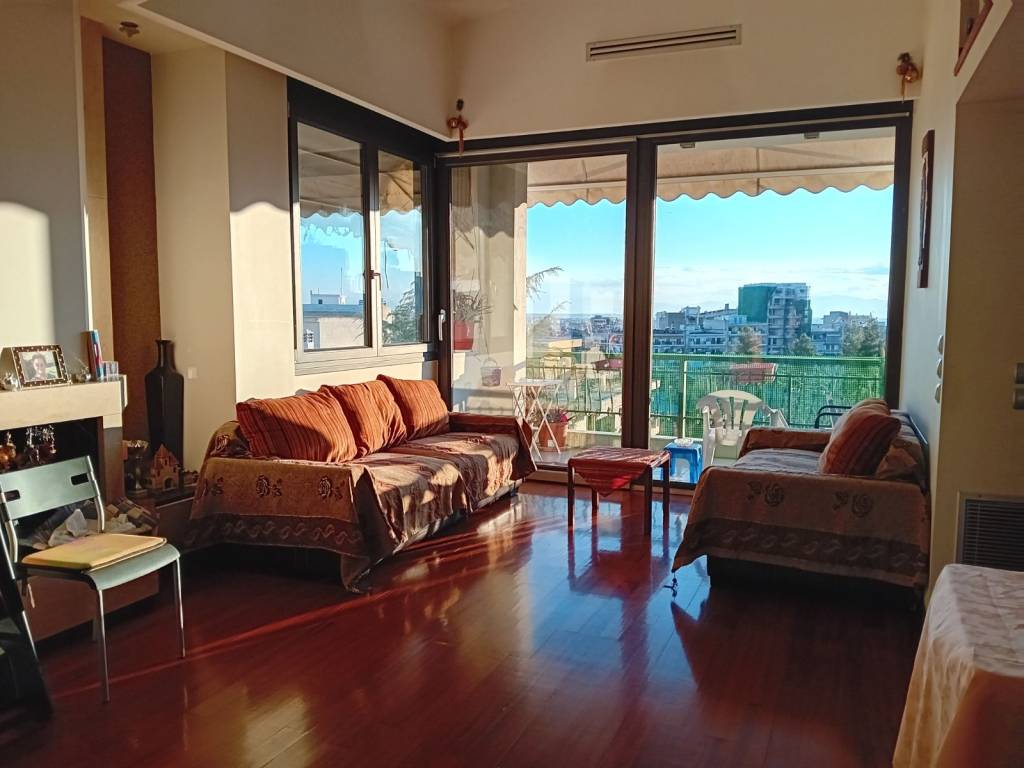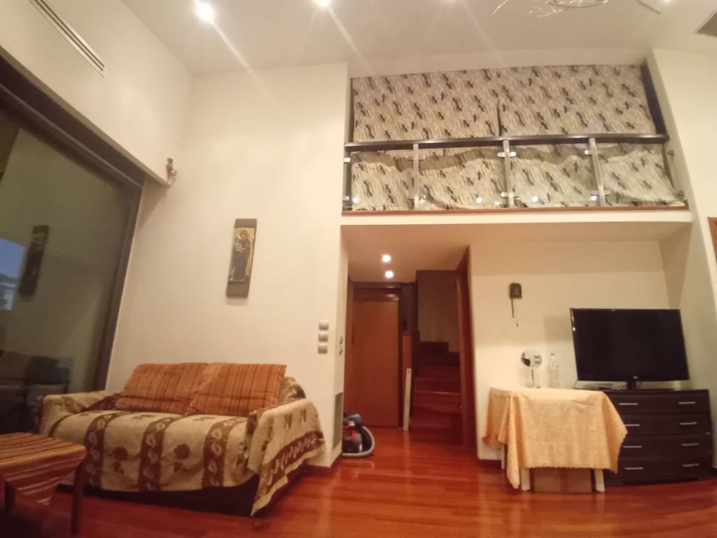 It is located next to the Peripheral Highway at exit 10 - in the Pylaia tunnel. This is a maisonette with an internal staircase. On the lower level there is the living room, one bedroom and the main bathroom. On the upper level there is the bedroom, office space and the auxiliary w.c.. There is a ceiling cooling-heating installation for all areas of the house.