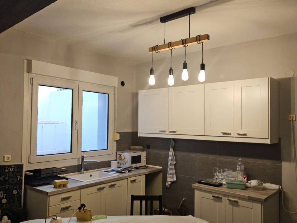 Ground-floor apartment (64 sq.m.) for rent in Ano Peraia, located in a quiet residential area. The property consists of an open-plan living room with kitchen, one spacious bedroom, and a bathroom with natural light (window). It also features a private veranda/garden for exclusive use. The apartment offers thermal insulation and autonomous oil heating. Provision available for air conditioning installation. Ideal for a single tenant or a couple seeking a comfortable home in a peaceful neighborhood.