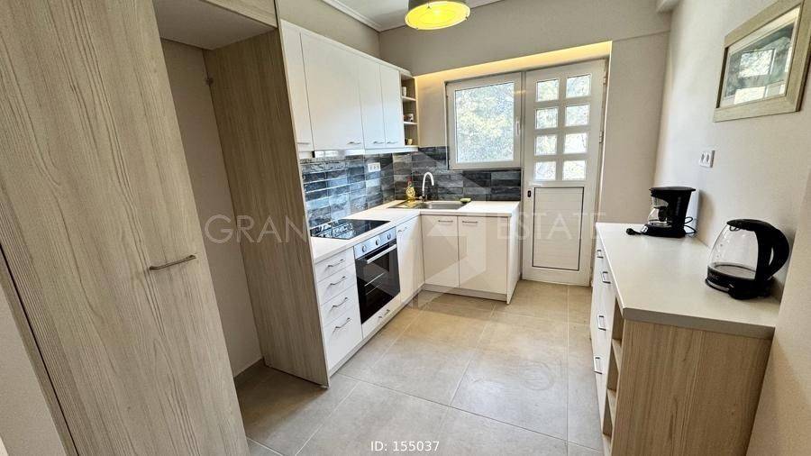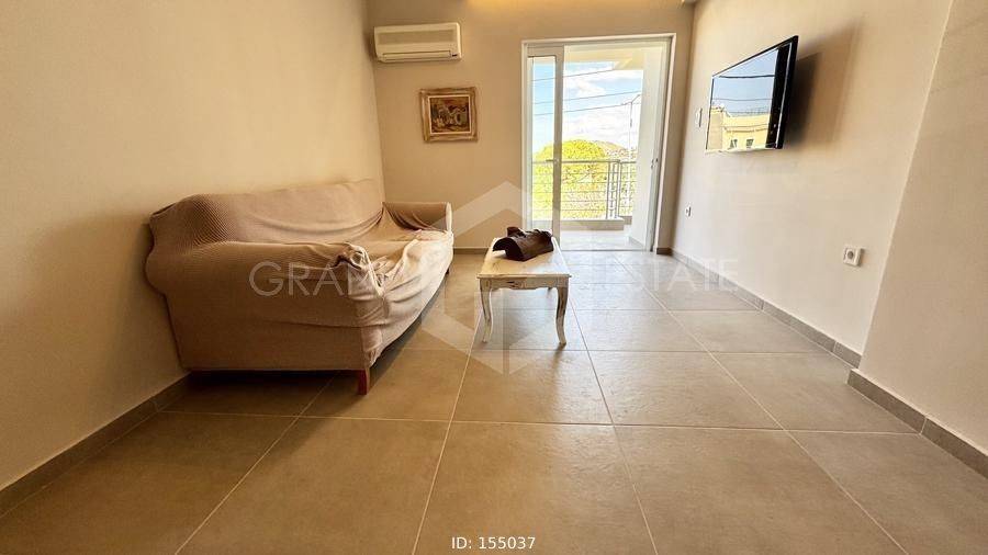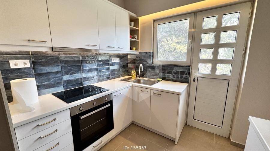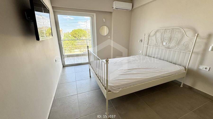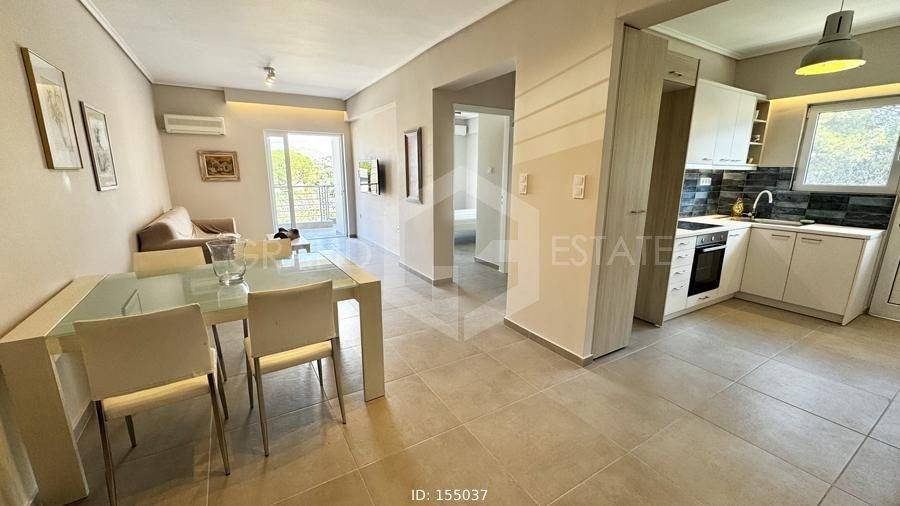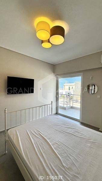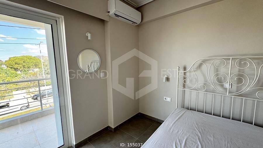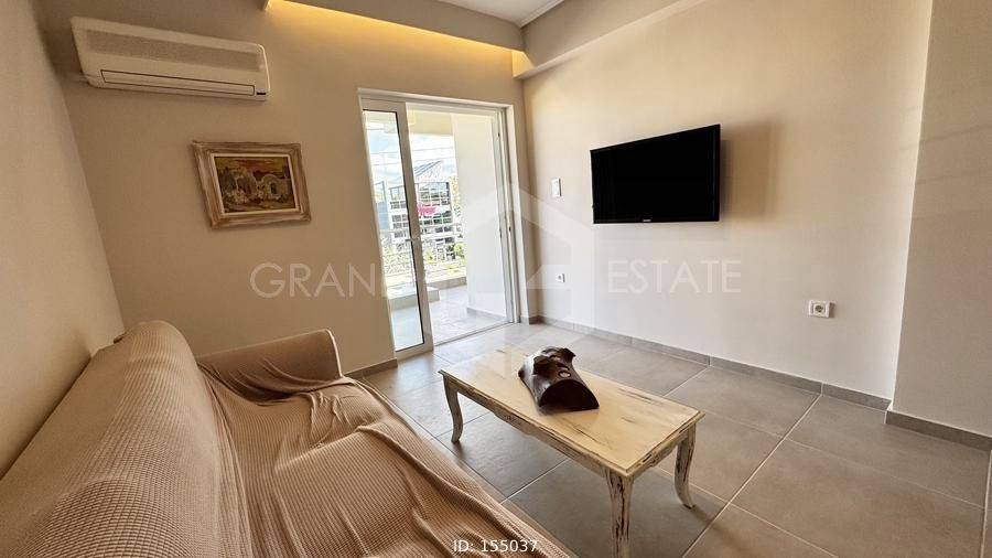 Kalyvia Thorikou, Lagonisi - Apartment 57sqm partially furnished, bedroom, levels 1, 1st, excellent condition, year built 1980, renovation year 2025, energy class D, living room, hall, kitchen, bathroom, heating type: autonomous (electricity), air condition, a/c type splits, quiet, dual aspect apartment, luminous, unobstructed view, frontage, painted, balconies, large balconies, elevator, built in appliances, aluminum frames, double glazed windows, door screen, wood & tile floors, secure door, pets allowed, within city plan, residential zone, access from asphalt, commercial use, close to sea (up to 200m), close to super market (up to 200m), close to entertainment (up to 100m), close to market (up to 100m). Stunning 57 sq.m. apartment in a prime location in Lagonisi, just 200 meters from the sea, close to shops, cafés, and local amenities. Fully renovated in 2025, it features a spacious bedroom, a bright living room, a modern and well-lit bathroom, and a practical kitchen with its own private balcony. The apartment is offered partially furnished and includes a sofa, dining table with chairs, two TVs, a fully equipped kitchen, and a bed, all in excellent condition. Ideal for a single tenant or a couple.