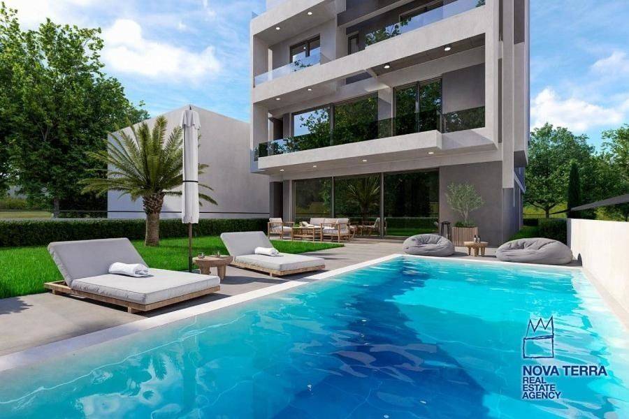 PALEO FALIRO, Duplex Apartment,, Sale, 102 sq.m, year built 2025, 2 rooms, Ground Floor, 1st, Various Characteristics: Balcony, Bath (2), Escalator, Fire Place, Kitchen, Living room, Store Room, Toilet, Flooring: Wooden floor, Heating: Autonomous Heat oil, Access road, Aluminium panels, Bright, Double-glazing, Facade, From Side to Side, Luxury, Minimal, Newly built, Painted, Residential area, Security Door, Solar Heating, Weekend Residence, In perfect condition: : : : Parking area: Parking, Energy class: A. property ID: 51143, www.nova-terra.gr