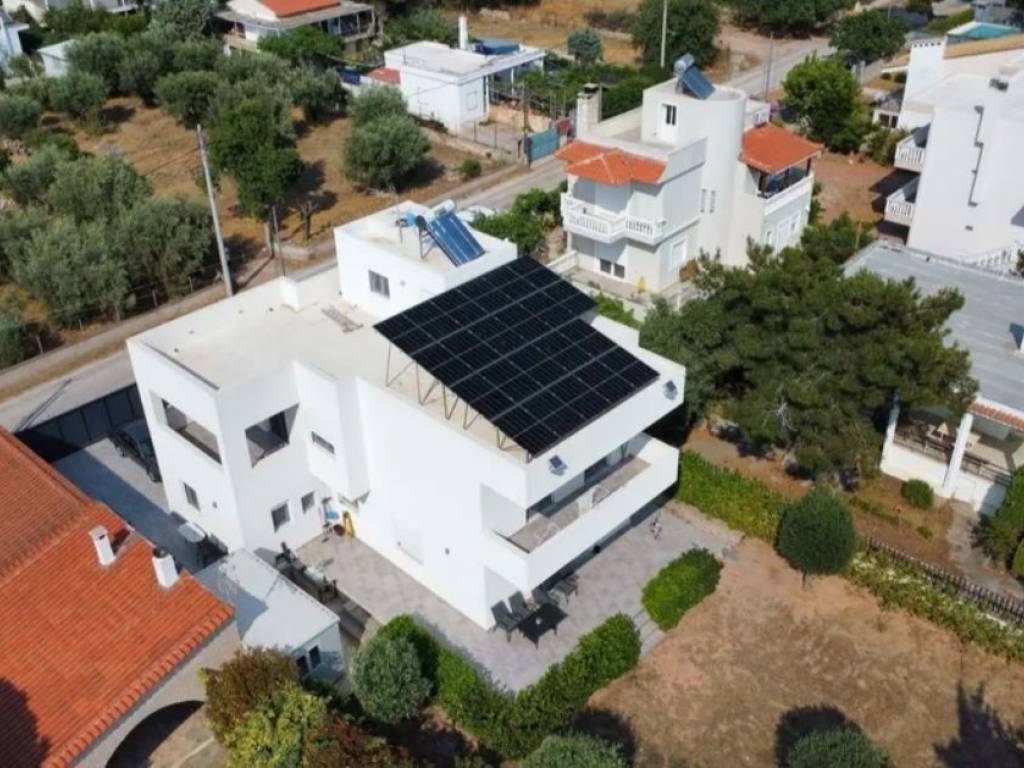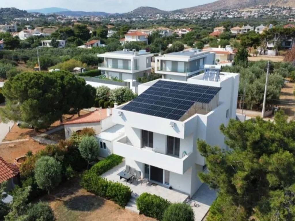 Lagonisi, Kalivia, Attica. Three-level maisonette, total area 221 square meters, on a plot of 610 square meters. The maisonette consists of 5 bedrooms, 3 bathrooms, 1 wc, 2 living rooms, 2 kitchens, hallway, internal staircase, aluminum frames, double glazing, screens, wardrobes, tiled and laminate floors, a/c, autonomous electric heating, underfloor heating, solar, alarm, BBQ, storage room, on the ground floor there is a separate studio (1 bedroom, kitchen-living room, bathroom), car charger, photovoltaic panels 10 KW, 3-space parking, east-southeast orientation, built in 2021. Distance from the sea 900 meters, from the airport 15' and from Athens 30', the area is good and quiet. Price €1,000,000, Tel.: 6943100054, site: www.primavistarealty.gr, email: primavistarealestate@gmail.com, Real Estate Office: Prima Vista Real Estate, 121 Anavyssos - Saronidas Avenue, 19013 Anavyssos.