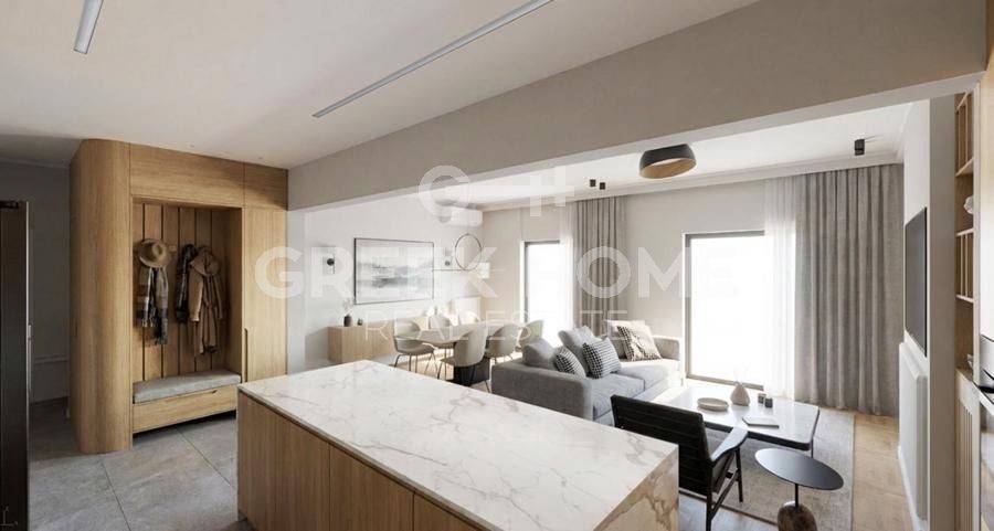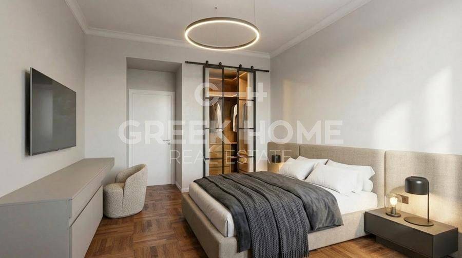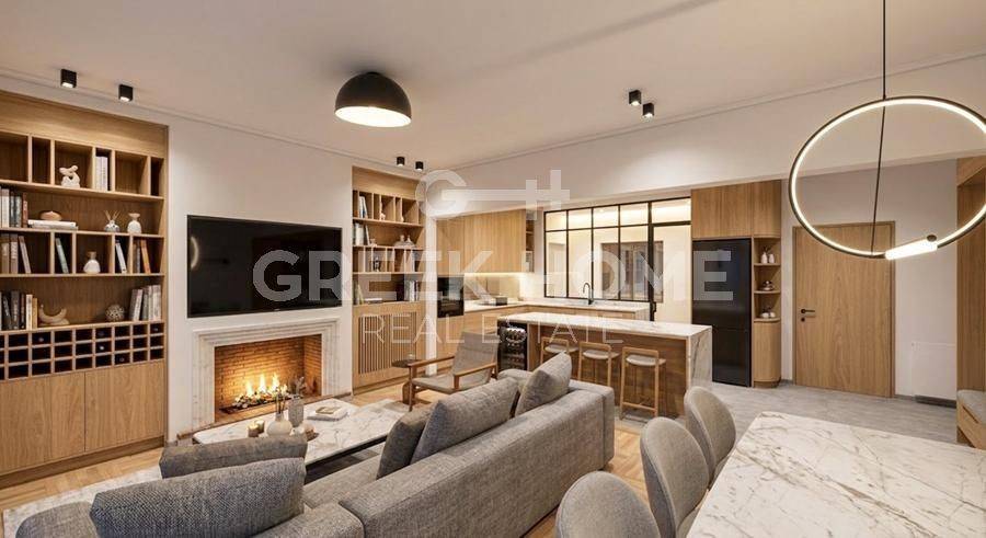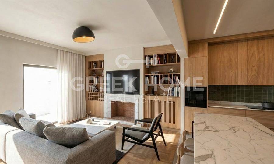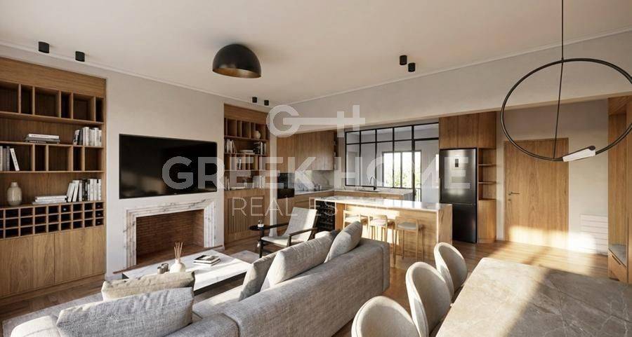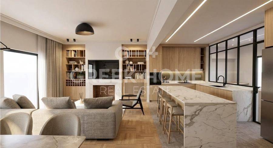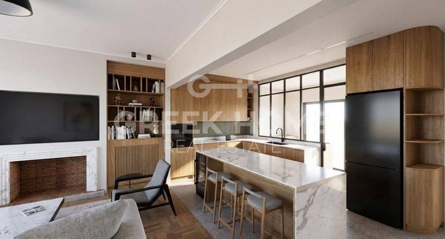 Nea Smyrni, Hrysaki - Floor Apartment 138sqm bedrooms 3, 3rd, fully renovated, year built 1973, renovation year 2026, energy class C, living room, hall, kitchen, 2 bathrooms, heating type: autonomous (natural gas), air condition, quiet, dual aspect apartment, luminous, corner, unobstructed view view, frontage, painted, electric roller shutters, storage space, boiler, fireplace, balconies, large balconies, elevator, thermal shut-off frames, double glazed windows, door screen, wood floors, office, secure door, alarm, video doorbell, luxurious, cloakroom, internet, pets allowed, east-southern orientation, investment property, special offer, close to market (up to 100m), close to sports facilities (up to 500m), close to park (up to 100m).