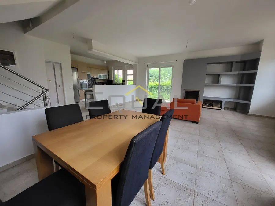 Detached house For rent, floor: Elevated Ground Floor, 1st (2 Levels), in Glika Nera. The Detached house is 160 sq.m. and it is located on a plot of 180 sq.m.. It consists of: 3 bedrooms, 2 bathrooms, 1 wc, 1 kitchens, 1 living rooms and it also has 1 parkings (1 Open). Its heating is Autonomous with Oil, Air conditioning are also available, it has Alluminum frames with Double glazed windows, the energy certificate is: C and its floors are Tiles, Wooden. The property's status is: Very good condition, it is close to Transportation, Park, Square, City Center, Cafe/Restaurants, Local market and it has NorthEast orientation. The Detached house is With Facade, Bright, Airy, Sunny, Airy and it also has the following unique features and advantages: Window Screens, Electric Appliances, Energy fireplace, Storage, Internal staircase, Garden, Security door, Night stream, Quiet neighborhood, Electric shutters. Price: €1.800. Equal Real Estate, contact phone: 2106203777, email: equal.pr.mn@gmail.com, website: www.equal.pr.mn@gmail.com