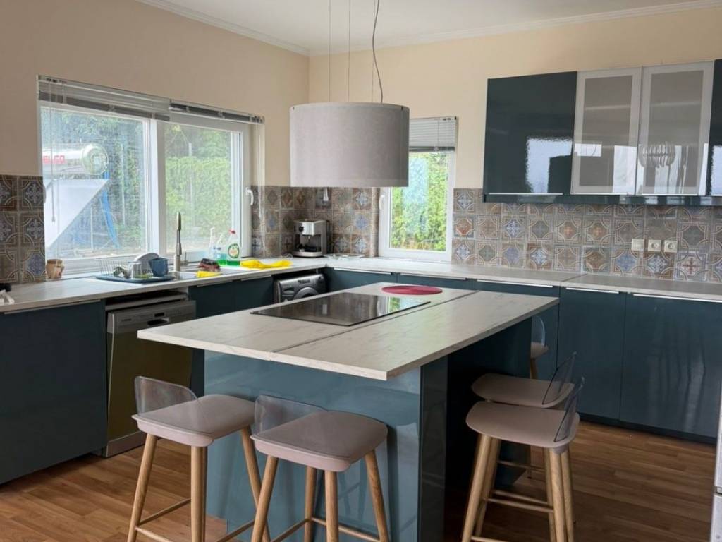This is an apartment in the village of Evropouloi (Evropouloi) Himara with an area of 115 sq.m. It is 10-15 minutes from Corfu town and is characterized by a wonderful view, as it overlooks Corfu town, the fortress and the port from the balcony. It is the second apartment in a three-story building. It consists of two bedrooms (one has its own bathroom), 2 bathrooms and an open-plan living room and kitchen. It has a comfortable balcony and parking space. In the kitchen there is a closed storage cupboard, a built-in oven and a dishwasher and in the rooms there are built-in wardrobes. The apartment has a large balcony in the living room and one in the large bedroom with the bathroom. The two bathrooms have windows as does the second bedroom. The apartment has a fireplace that heats both the rooms and air conditioning. The price of the apartment includes all bills. The apartment is available unfurnished. Contact number: Kolionasiou Elena 6936778307