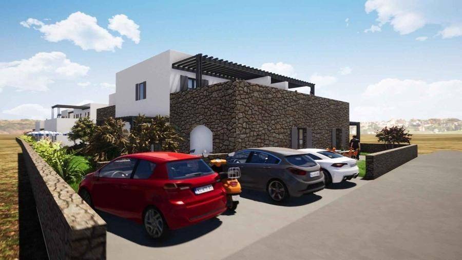 Fοr sale by SCOPAS REAL ESTATE & CONSTRUCTION. House of 62m2 is located on the south side of Paros, in the area of Alyki in a Complex of 16 apartments under construction. It is located at the entrance of the settlement (on the first plot of Alyki's plan) in an ideal location. It consists of 2 buildings. Each building will have 8 apartments from 55-65 sq. Square meters. Measures each. Four of them are on the ground floor and 4 on the 1st floor. The total area of the apartments in each building is 450 sq.m. without including underground spaces (play-rock and communal). The ground floor apartments will also have an underground play-rock and a privately-owned garden. The 1st floor apartments have balconies and storage in the basement. All apartments have parking spaces 8 apartments of the same category are available Less than 500 meters from the beach, it is an ideal choice for a holiday home or rental investment Southern orientation with a street view. All networks are available. Access by paved road. 450 meters from the sea. 900 meters from the harbour of Alyki. 4 km from the airport. 12 km from the port of Parikia.
