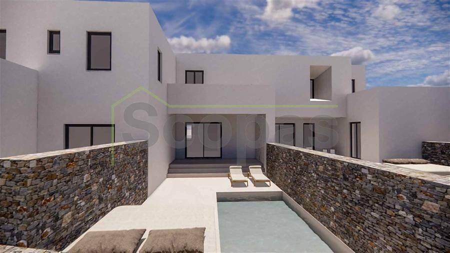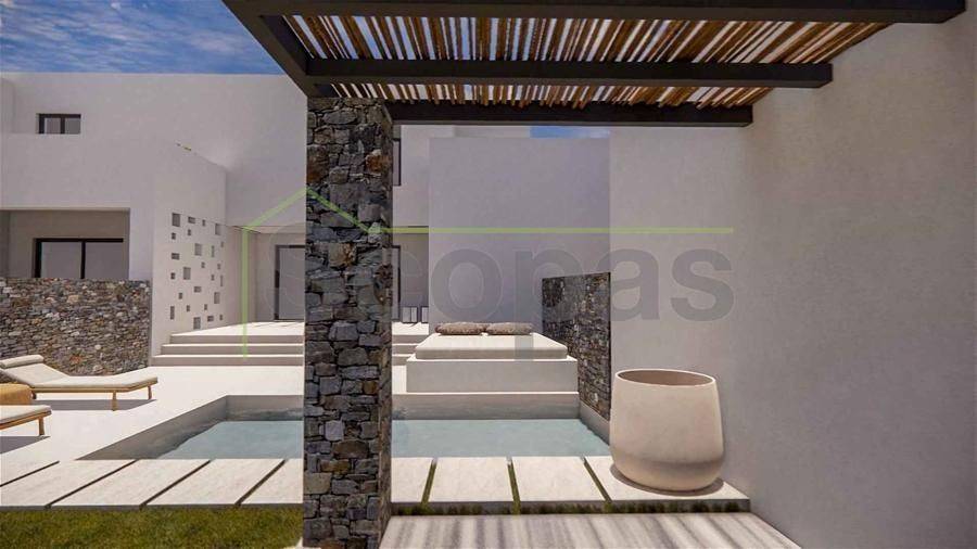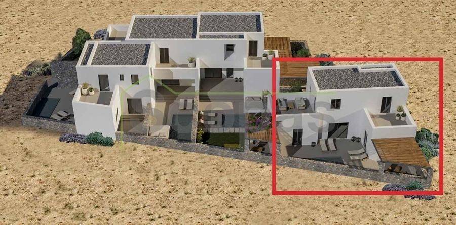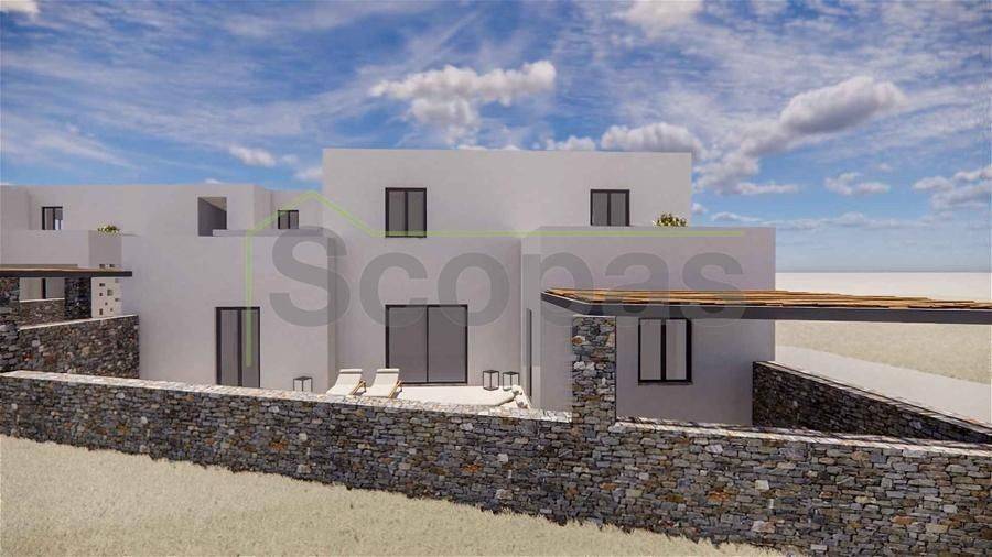 House of 120.5m2 for sale by SCOPAS REAL ESTATE & CONSTRUCTION. 2-level house of 120.5m2 (fully furnished), on a plot of 1006m2, on the south side of Paros, in the area of Agkairia. The property consists of 2 bedrooms both with ensuite bathrooms, a living room area, a kitchen and a wc. It also has a beautiful outdoor area with a swimming pool, outdoor lounge, and parking. South orientation with a unique view of the Aegean Sea and Antiparos Island. Suitable for permanent or holiday home in the idyllic Cycladic landscape. It is also an ideal choice for investment. Accessible by paved road. 1.9 km from the sea, 5 km from the airport, 13.3 km from the port.