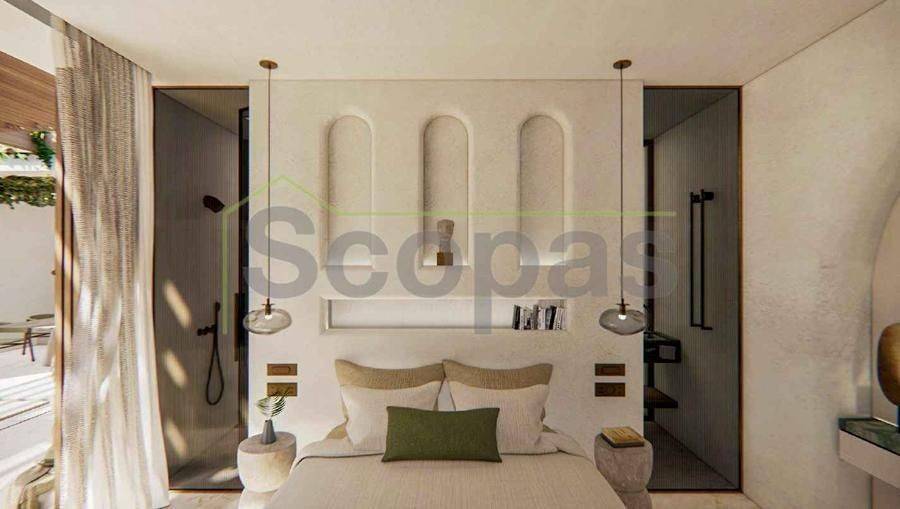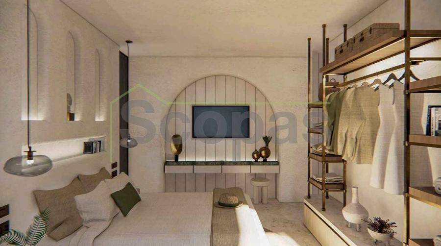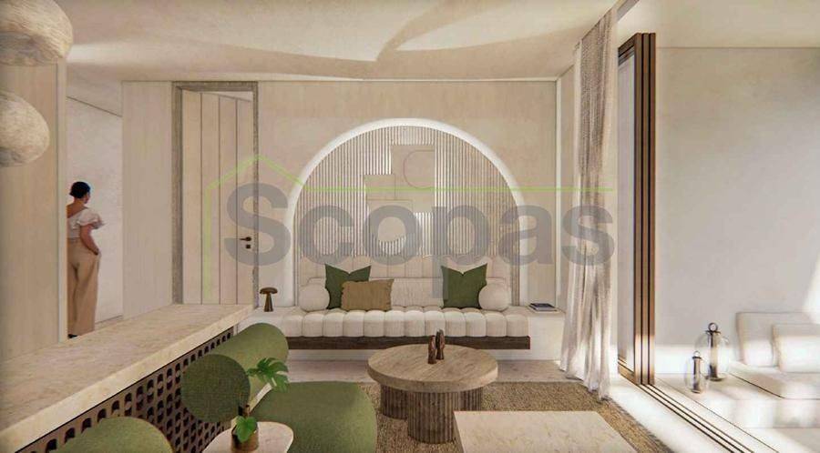 House of 165,04m2 for sale in Naousa by SCOPAS REAL ESTATE & CONSTRUCTION. Newly built 3 level house with a total area of 165.04m2, in northern Paros, in cosmopolitan Naousa. It consists of 3 rooms with an ensuite bathrooms, a single kitchen-living room area and a storage room. The property also has a parking space and 156.34m2 of outdoor space with a private pool and garden. Suitable for permanent or holiday home in the idyllic Cycladic landscape. It is also an ideal choice for investment. Northwestern orientation with sea view. Access from a paved road, 1 km from the beach and just a 14-minute walk from the picturesque port of Naoussa, 10.8 km from Parikia, 20.6 km from the airport. The information and characteristics of the properties have been entered based on the information and data provided by the principal. -The point on the map does not correspond to the real address of the property. -When indicating the property, a identity card or VAT number is necessary, according to Law N.4072/2012 - Official Gazette 86/A/11-4-2012.