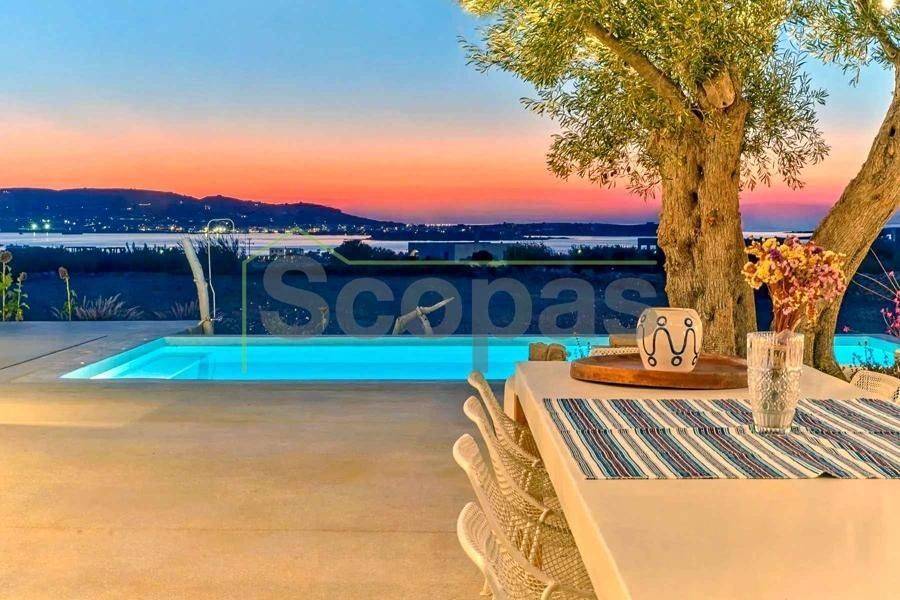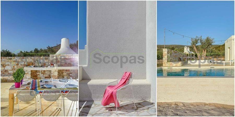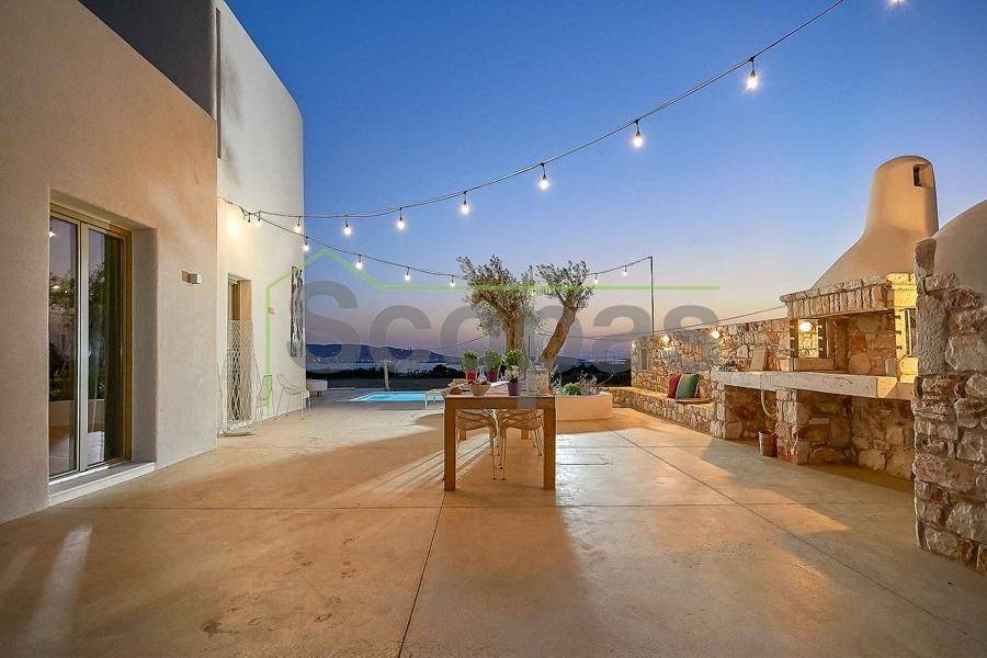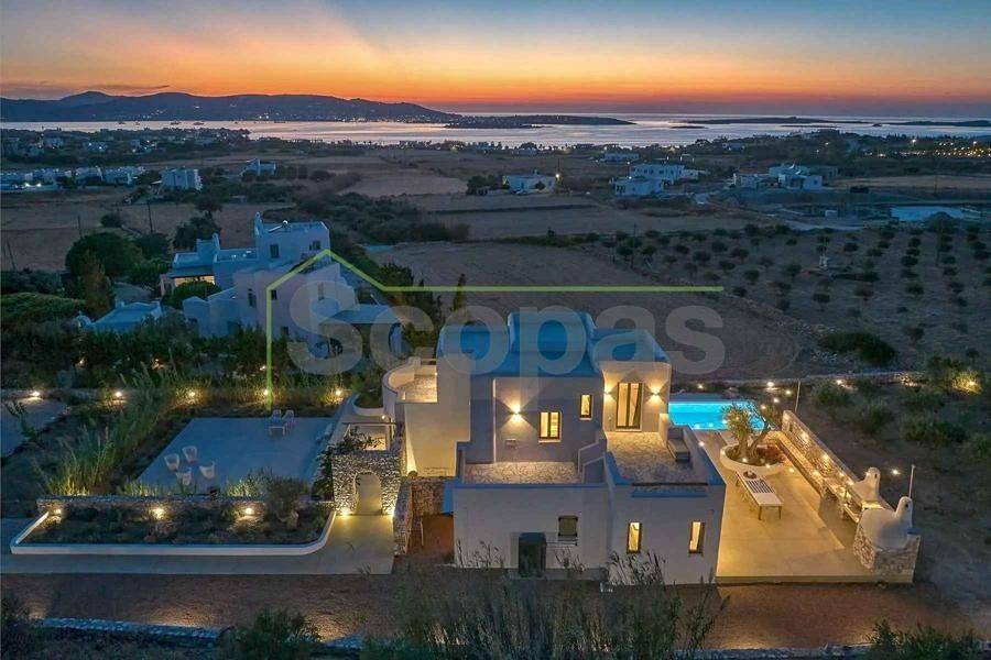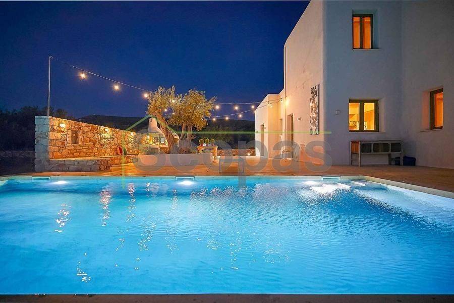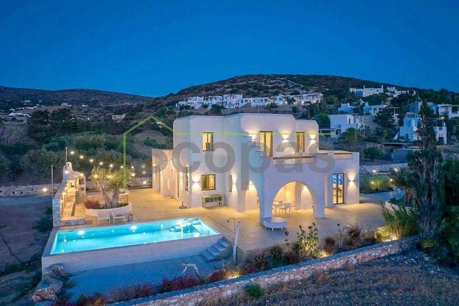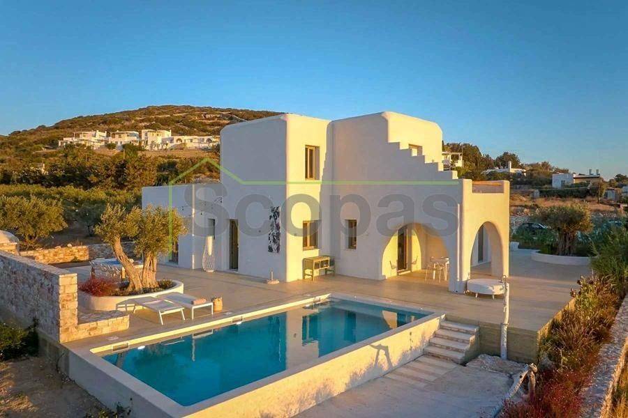 Maisonette for sale by SCOPAS REAL ESTATE & CONSTRUCTION. This 2-storey maisonette (ground floor and first floor) spans 210m² and is located in southwestern Paros, in the Glysidia area. The property is fully furnished and equipped, consisting of 3 bedrooms, 3 bathrooms, 1 w/c, a storage room, a kitchen, and a living room. Additionally, it features a swimming pool, a garage, a garden with automatic irrigation, a barbeque area, and ample parking space. It is suitable for use as a permanent residence or a holiday home in the picturesque Cycladic landscape. Moreover, it represents an ideal investment opportunity. With a western orientation, the property overlooks the sea and Antiparos Island. It is accessible by a paved road and is conveniently located: - 2.3km from the beach, - 6.2km from the airport, - 6.5km from the port. The details and characteristics of the property have been documented based on the information and data provided by the principal. - Please note that the point on the map does not reflect the actual address of the property. - When visiting the property, an identity card or VAT number is required according to Law N.4072/2012 - Official Gazette 86/A/11-4-2012.