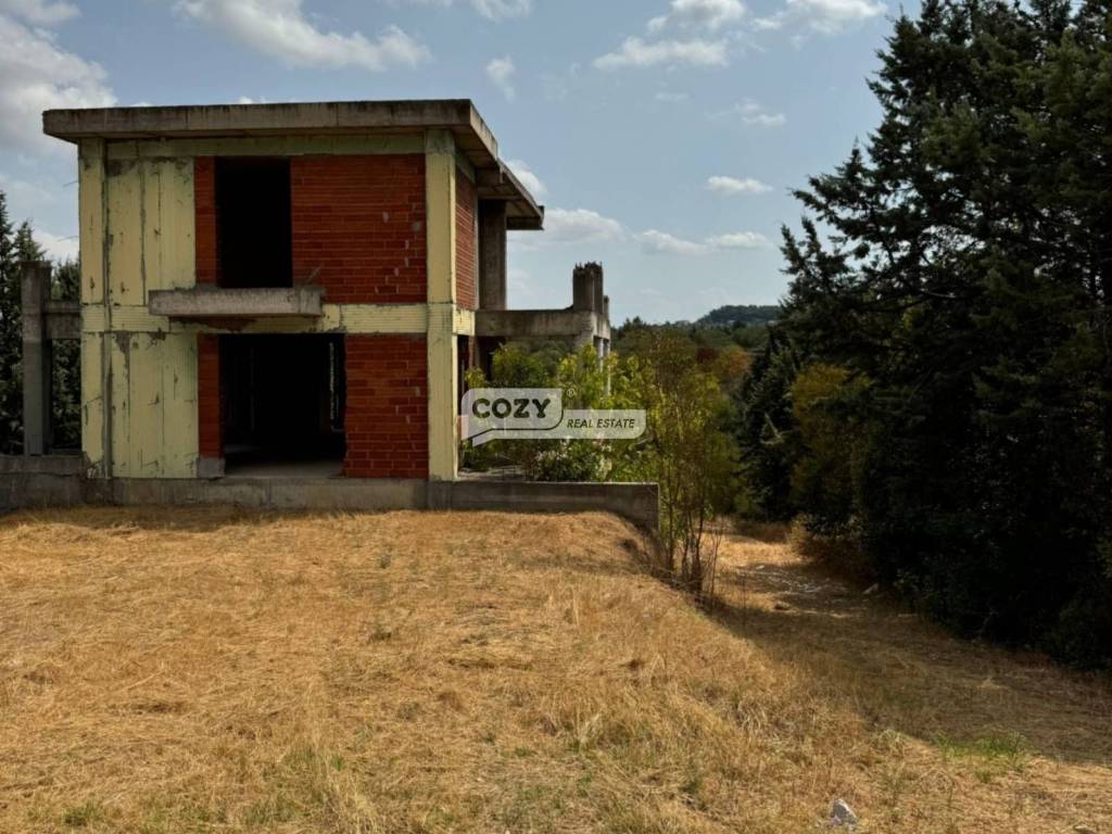 For sale: a detached, four-sided, incomplete maisonette with a total area of 350 sq.m., situated on an even and buildable plot of 2,025 sq.m., within the settlement of Plagiari, Mikra.